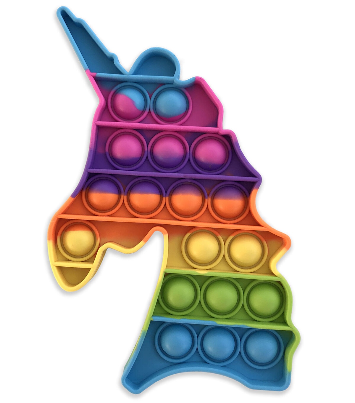 This set of 6 fun, Unicorn Bubble Pop It Fidget Toys makes thoughtful party favors. Bubble Pop It Toys are a great way for kids and adults to relieve stress manage anxiety and maintain focus. Used as a game, it also exercises mathematical thinking and reasoning. For a game, take turns seeing who can pop the most un-popped bubbles in a row, and do not be the player to pop the last bubble. Rainbow Unicorn Fidget Toys are made of soft and washable silicone. Perfect for school, travel, car rides and the office.