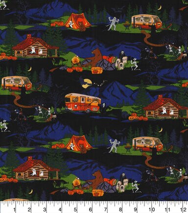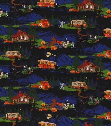 • Halloween Black Happy Haunting Campground Cotton Fabric