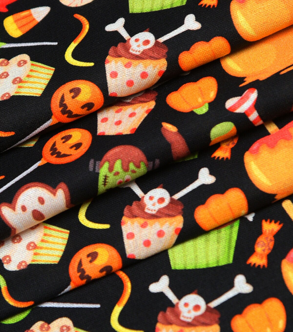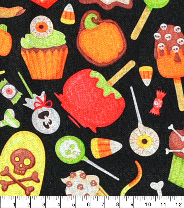 • Halloween Candy On Black Cotton Fabric