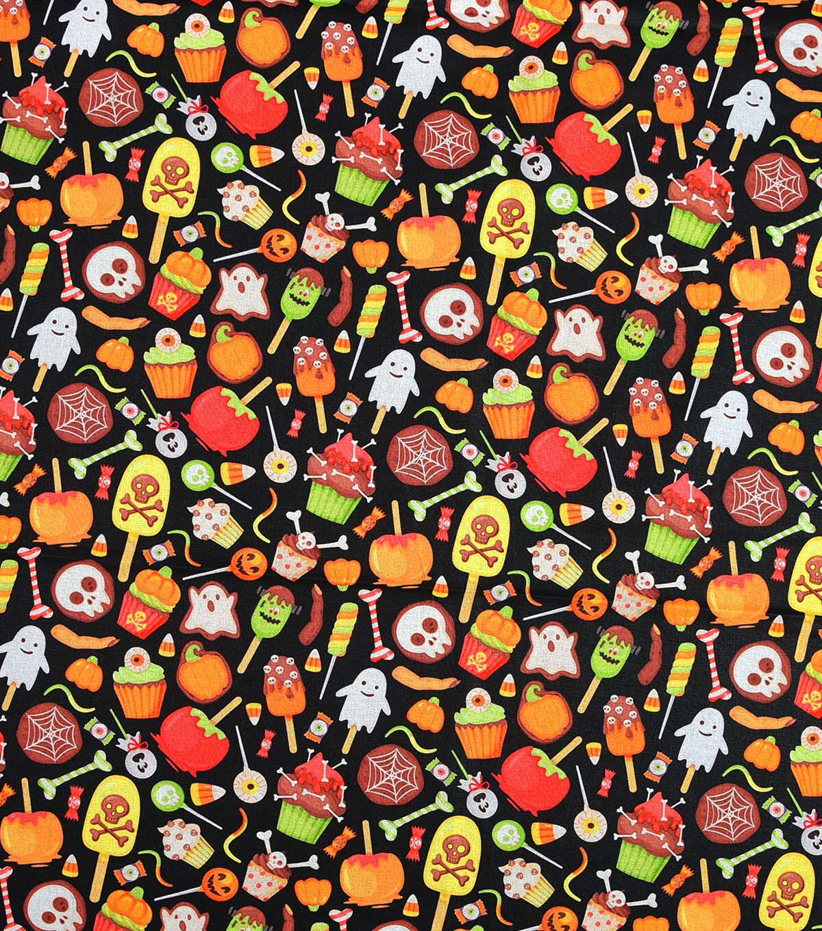 Halloween Candy On Black Cotton Fabric