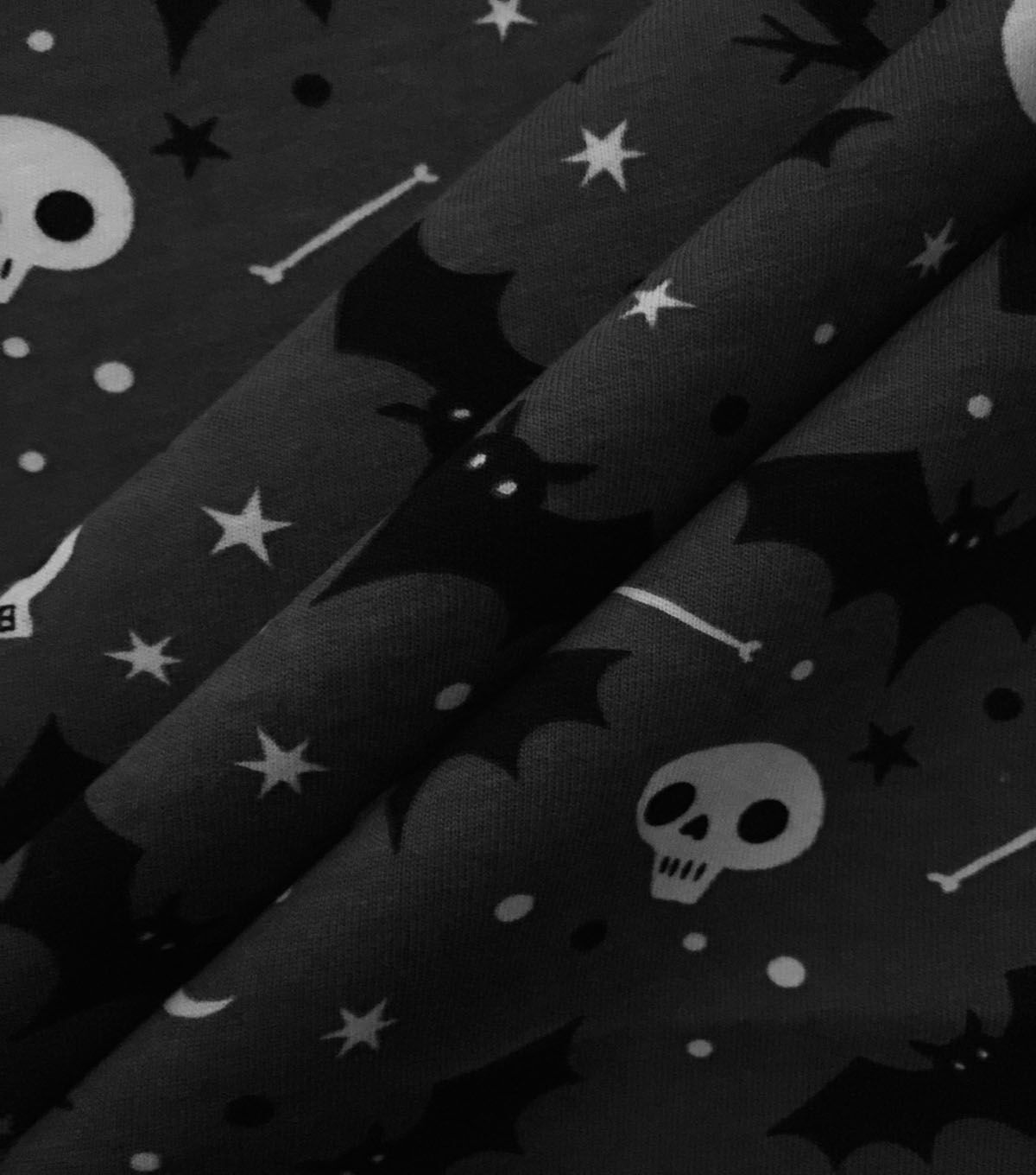 It's time for spooky fun for the whole family with our POP Halloween fabric. This single knit jersey is lightweight for easy movement and breathability, and with many designs to choose from like candy and ghosts. Kids will love to haunt the house playfully in pajamas or other apparel. It's a crafty way to have a spooktacular time for all.