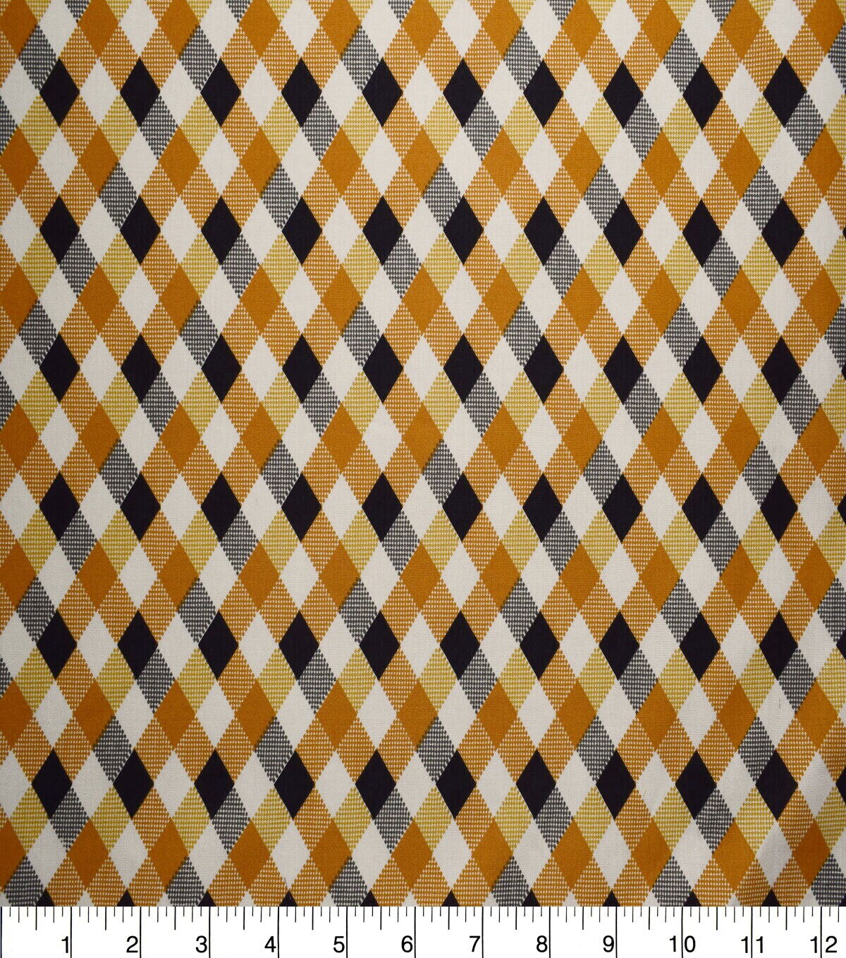 Halloween Orange & Black Checkerboard Cotton Fabric