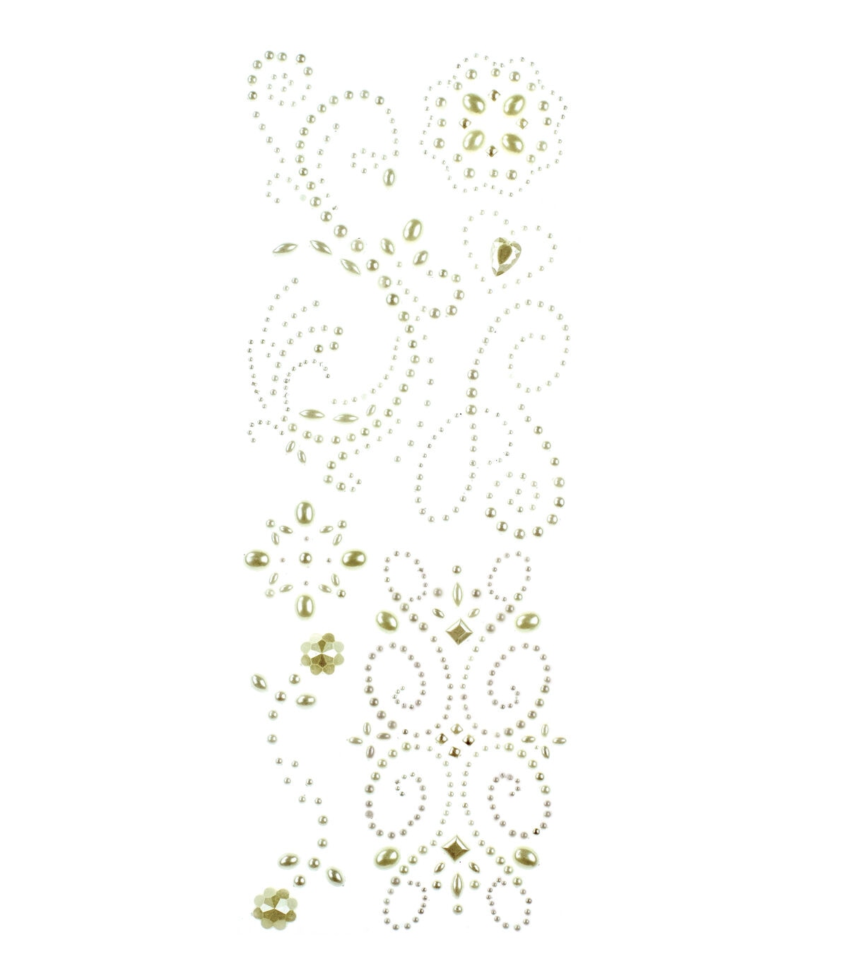 Handmade Swirl Adhesive Gems. When it comes to embellishments, these are a gem! Each adhesive bead peels off like a sticker. Simply place and press. This package contains seven stickers on a 4-1/2x12 inch backing sheet. Color: Pearl. Imported.