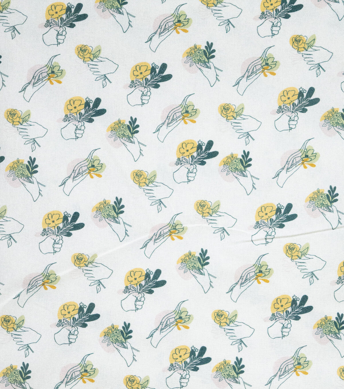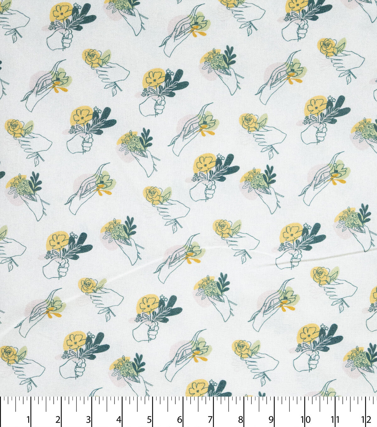 • Hands And Flowers Neutral Novelty Cotton Fabric
