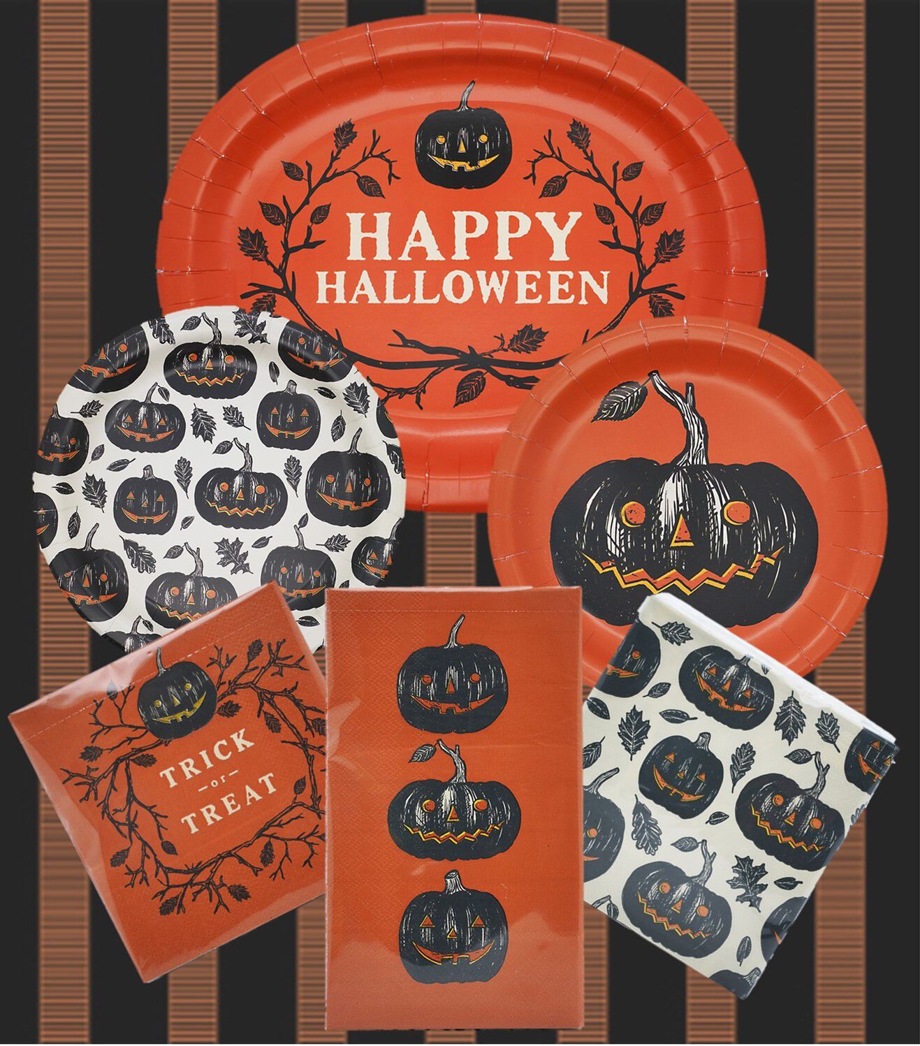 Add a dash of spookiness to your tablescape with this Happy Halloween Coordinating Paper Entertaining Set.