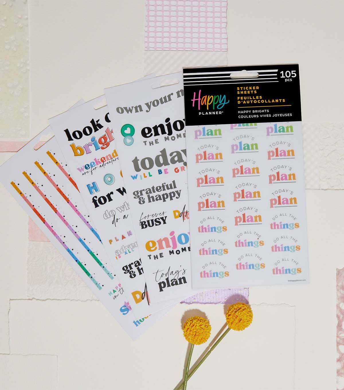 Own your magic. These sticker sheets feature colorful bursts of positivity and reminders to add your layouts. Add these to your scrapbooks, Memory Keeping Journals, or Happy Planner spreads and lighten up your mood.