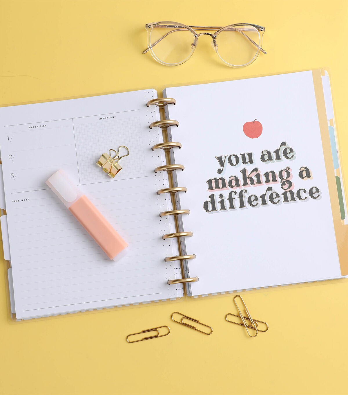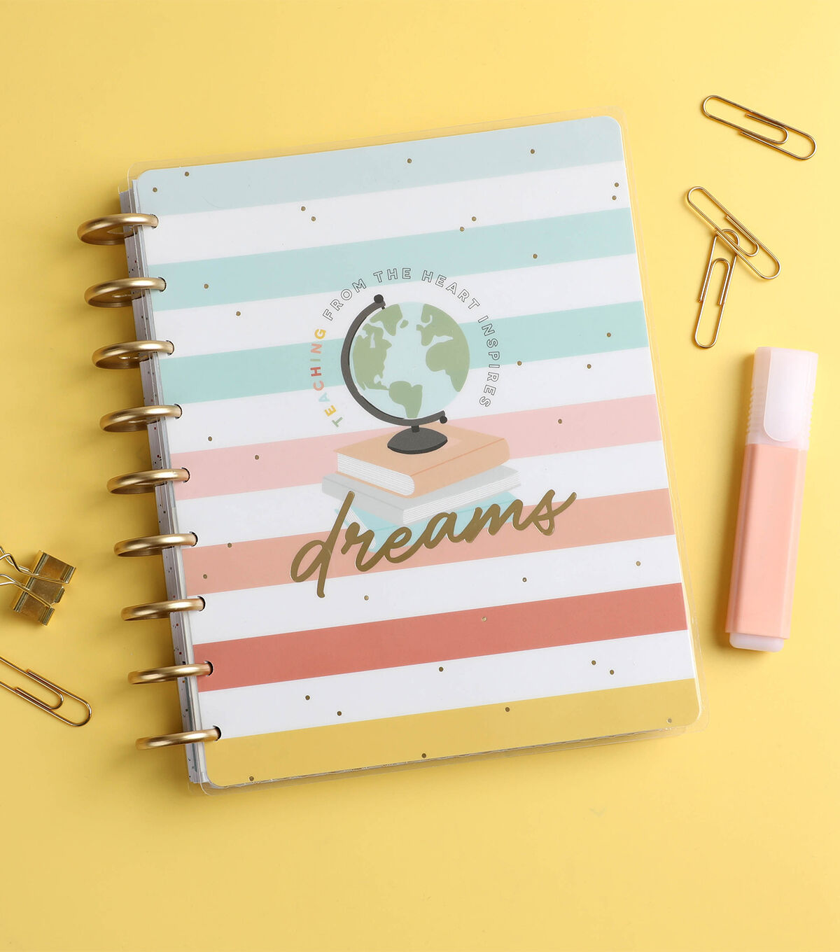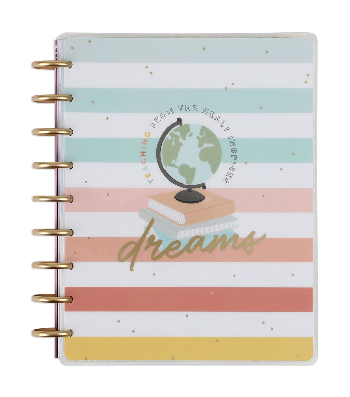 Teach from the heart. This Classic size Happy Planner is undated and can be started any time during the school year. It includes 12 months of calendars and weekly spreads. The teacher layout is formatted to help with classroom organization, lesson planning, and scheduling.