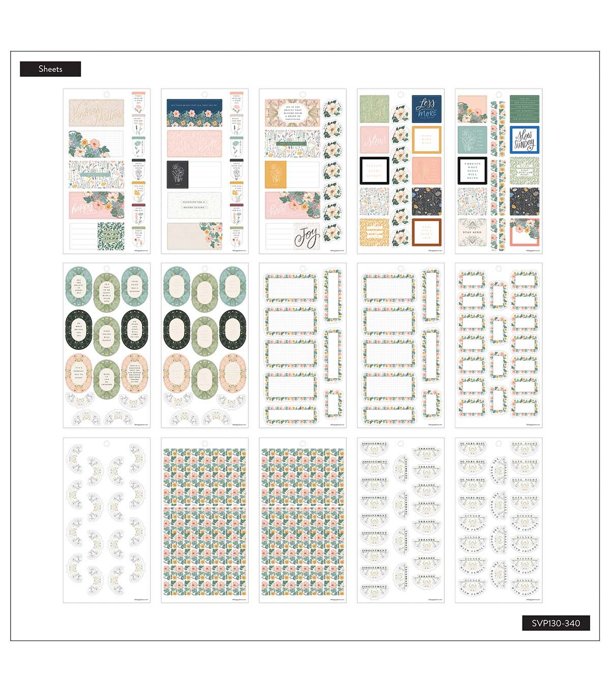 This Chintzcore Flowers value pack sticker book features a bouquet of floral arrangements aimed to create beautiful layouts. Add additional function to your Happy Planner, notebook, or bullet journal. Keep your creativity on point with Granny chic floral and motivational quote stickers that inspire your inner artist.