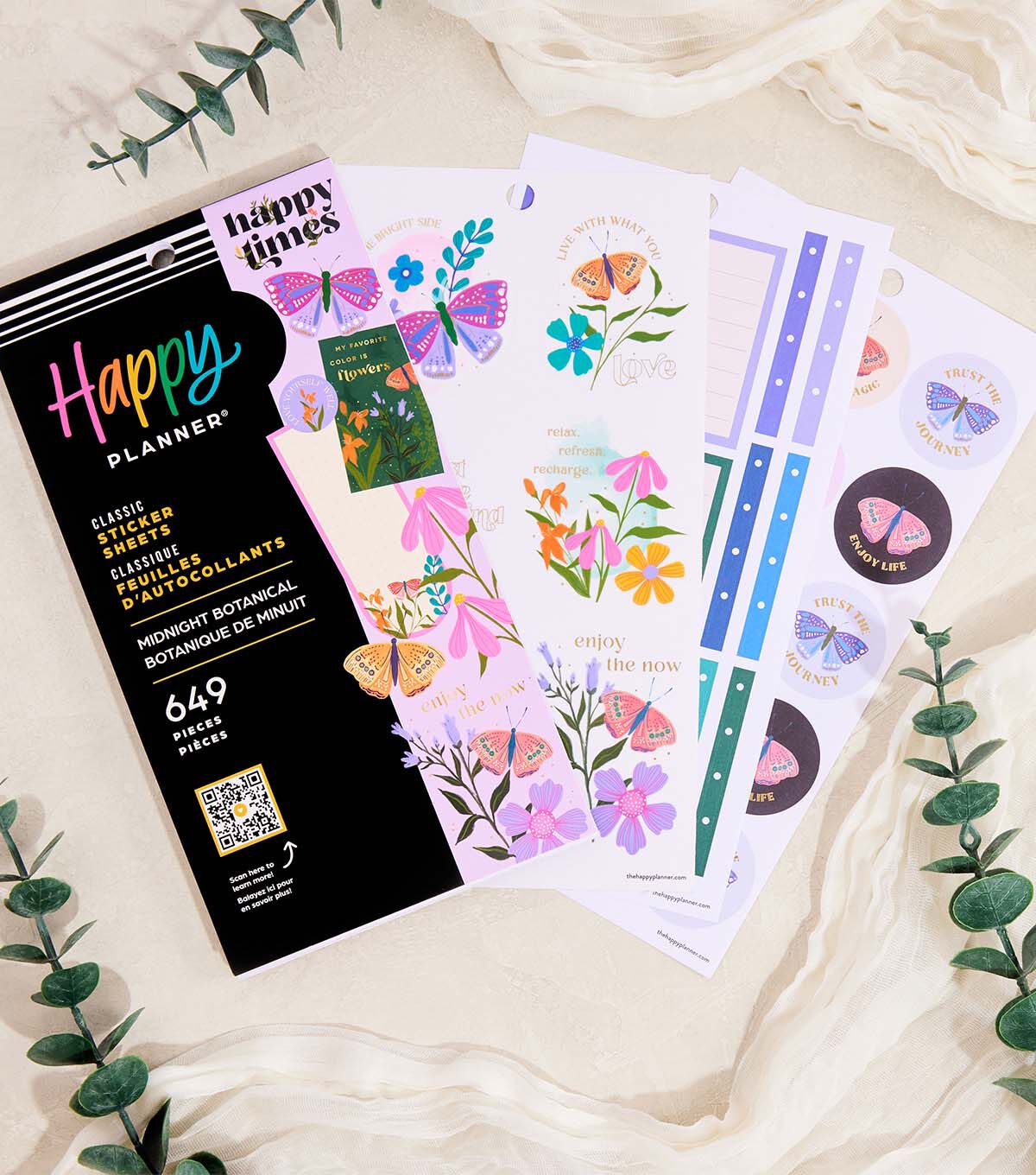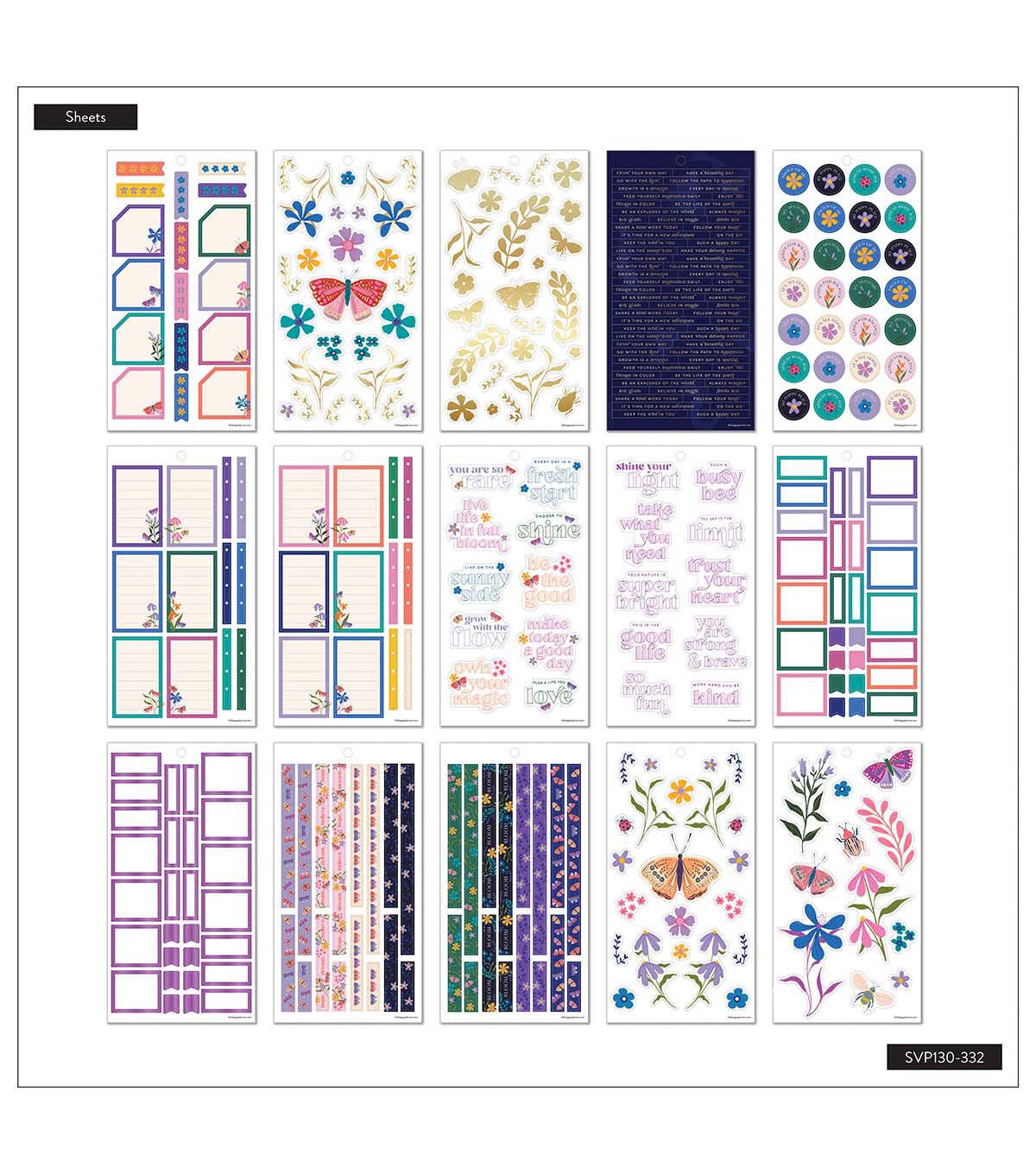 This Midnight Botanical sticker book features pinks, purples, and garden-grown florals. Expand the use of your planner layouts and unleash your artistic side with these gorgeous botanical stickers. Make notes, add reminders, and jot down quick ideas. Add these themed stickers to any Happy Planner, notebook, or journal. Create plans that are one of a kind!