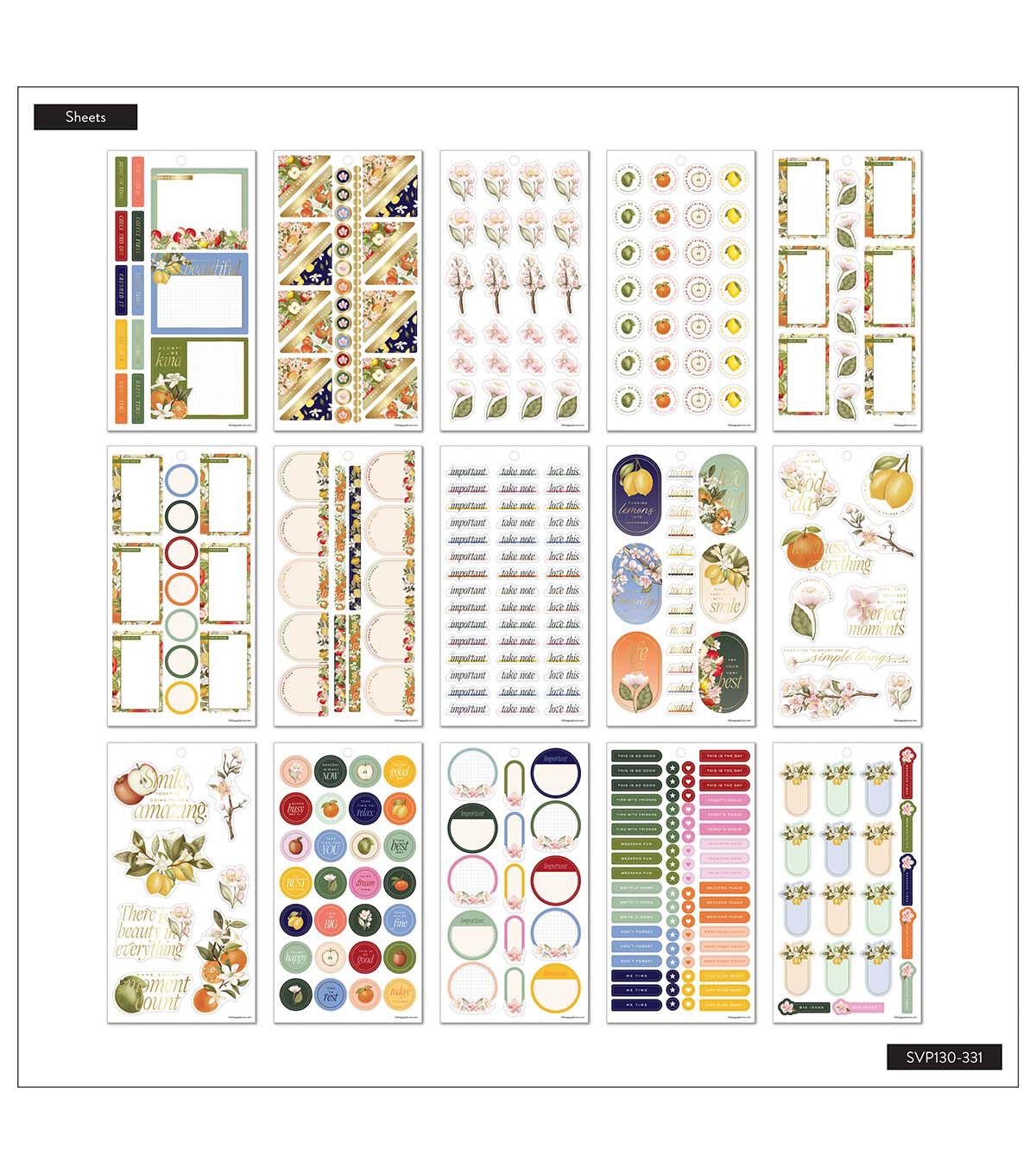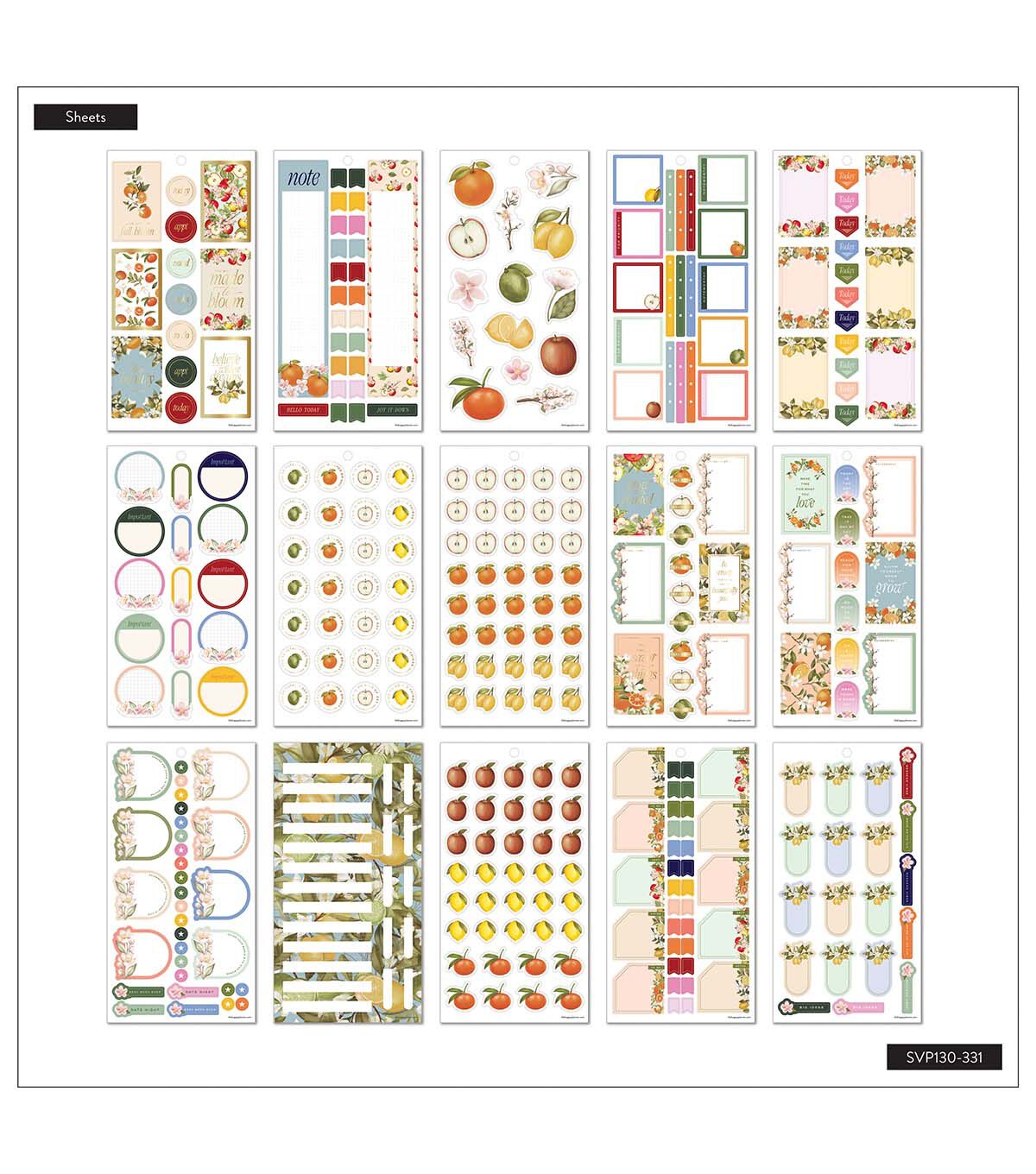 This Fruit & Flora sticker book features fruit stickers and floral stickers for planning creatively. Make your planner unique with your own designs using our functional and decorative stickers. Add fruit and flower themed stickers to your layouts in any of our Classic size notebooks, Happy Planners, or bullet journals. Our stickers were curated especially for our line of planning products.