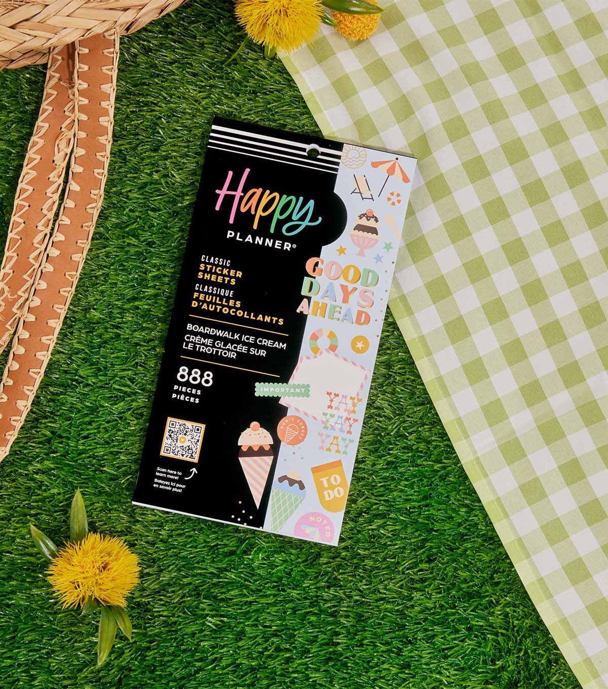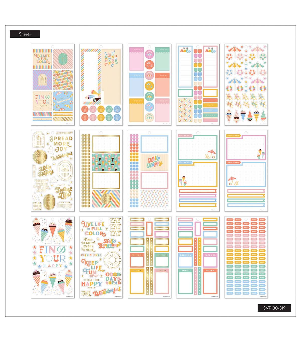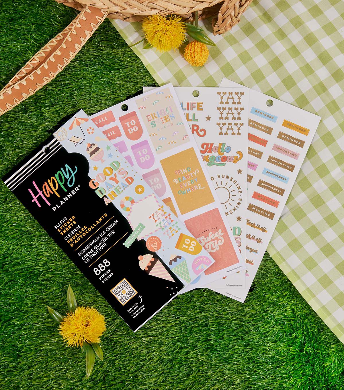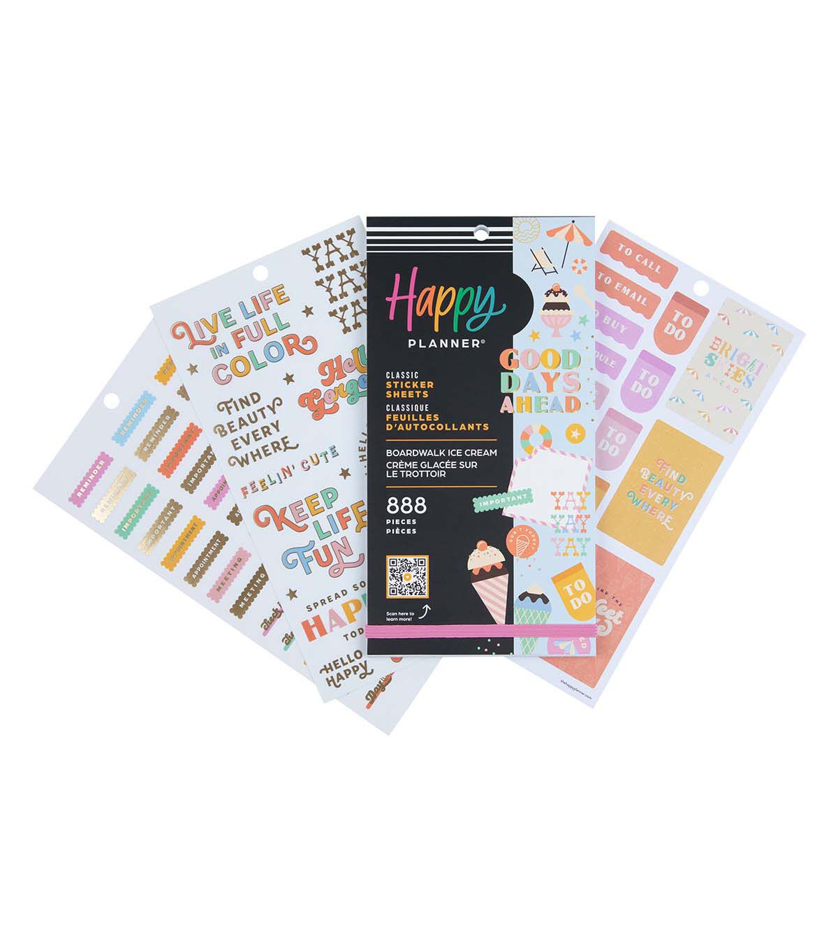 This Boardwalk Ice Cream sticker book features summery vibes to brighten any day. Take notes, add reminders, and make your layouts shine like the sun! These Summer themed stickers are the perfect addition to any Happy Planner, journal, or notebook. Our high quality stickers were tailor made to fit into our Happy planning products.