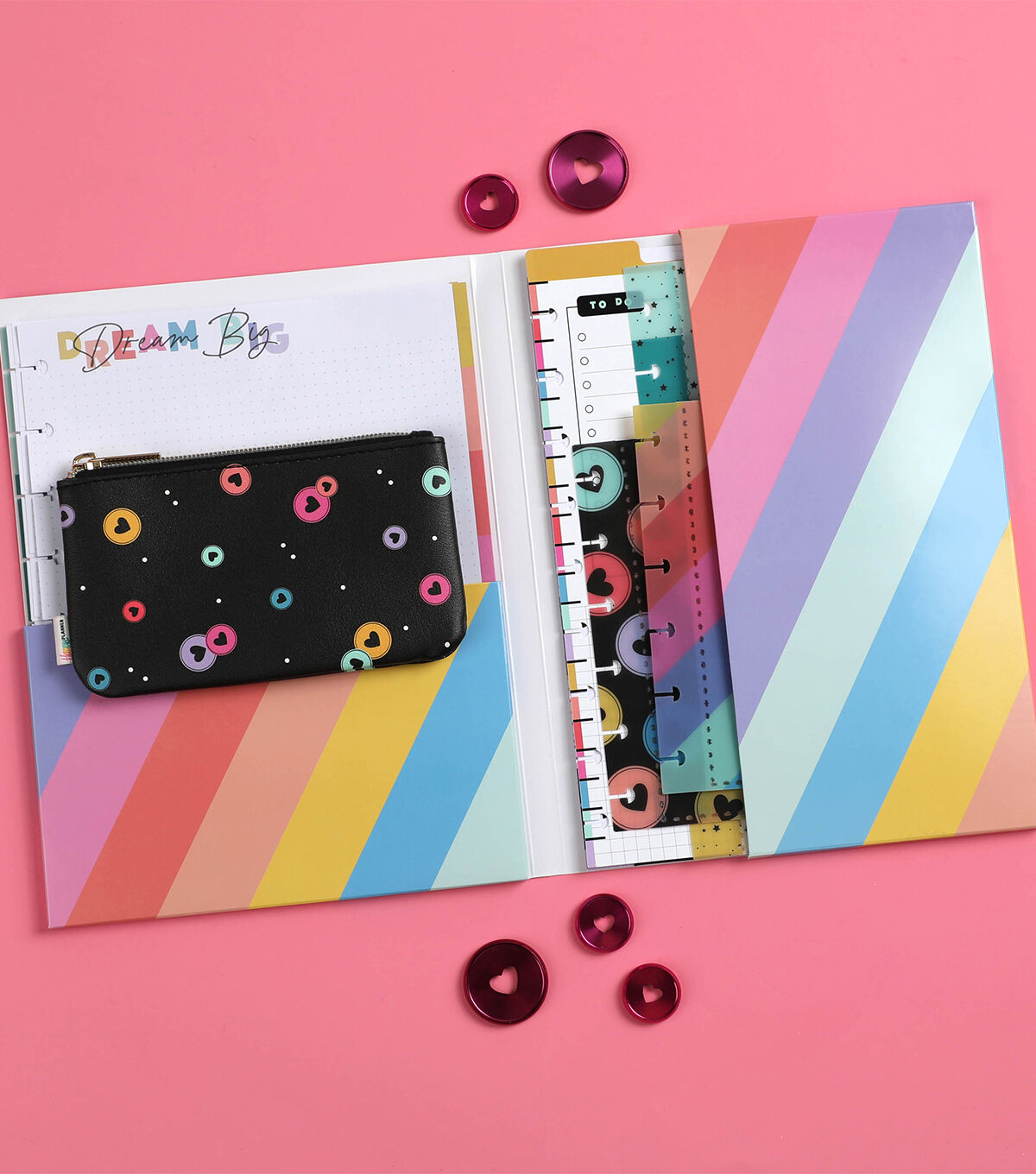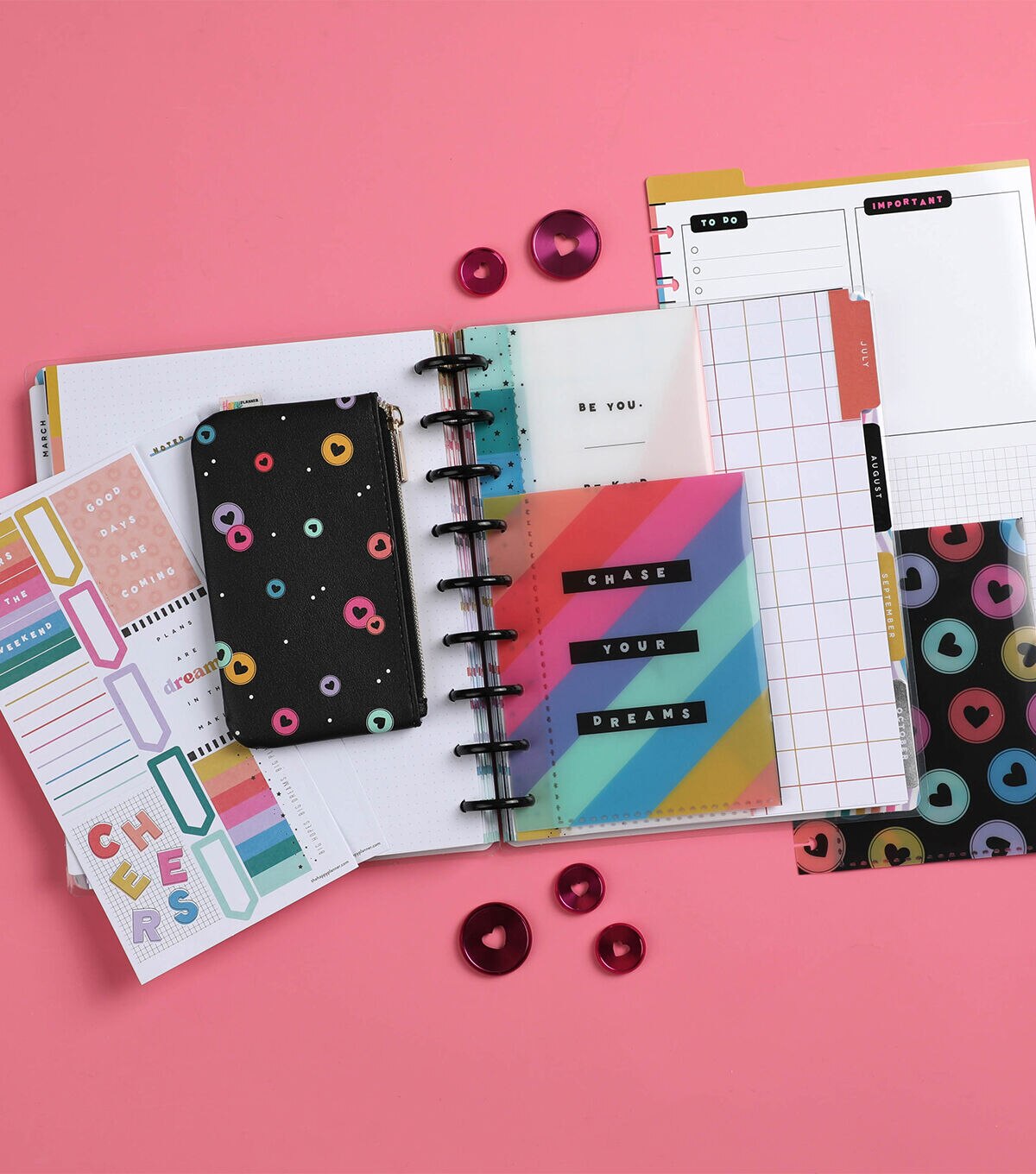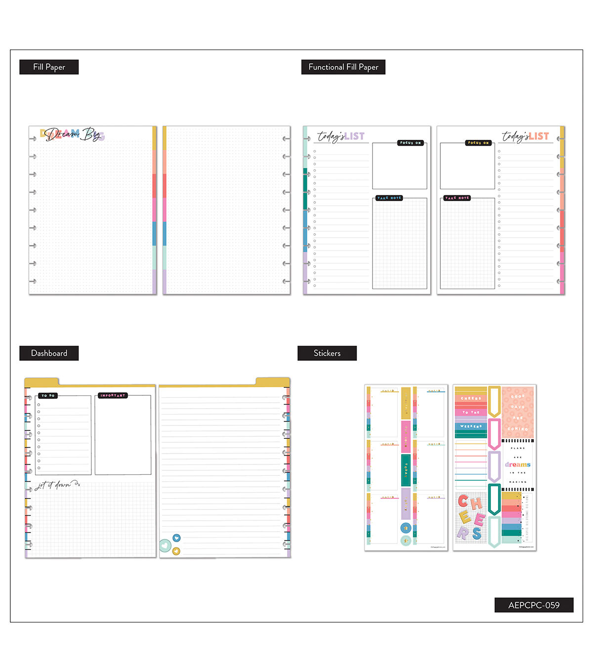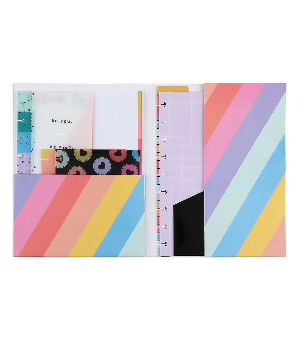 Today is a good day for a good day with this Happy Brights planner companion pack. It includes vision boards, a dry-erase dashboard, plastic envelopes, notepaper, a storage and pocket folder, and a zip pouch. Add these fun and functional accessories into your planner or notebook. This pack is for Classic sized Happy Planners, notebooks, and journals.