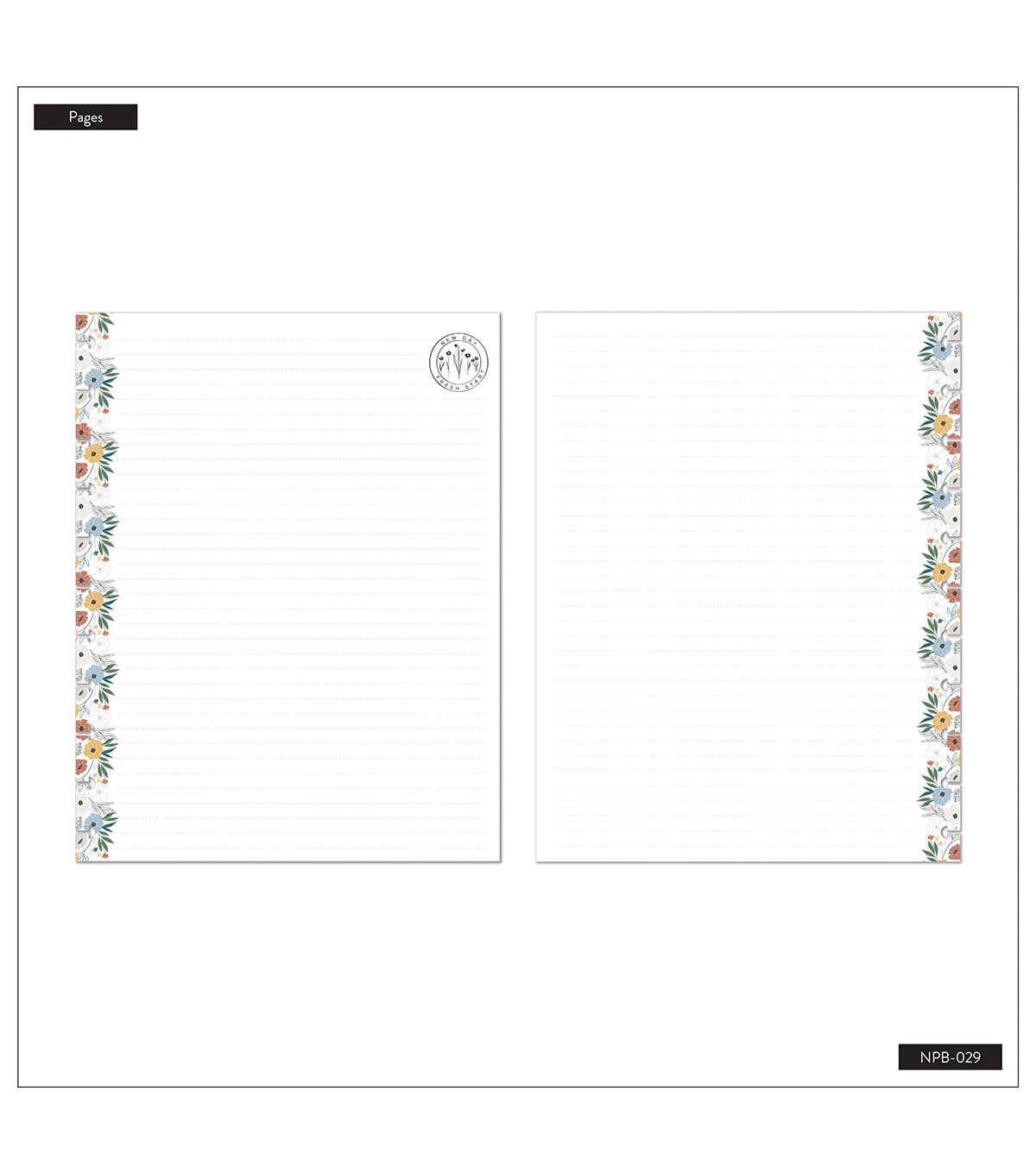 - Dotted lined pages for writing, planning, and goal setting. Features calming colors and flowery designs.