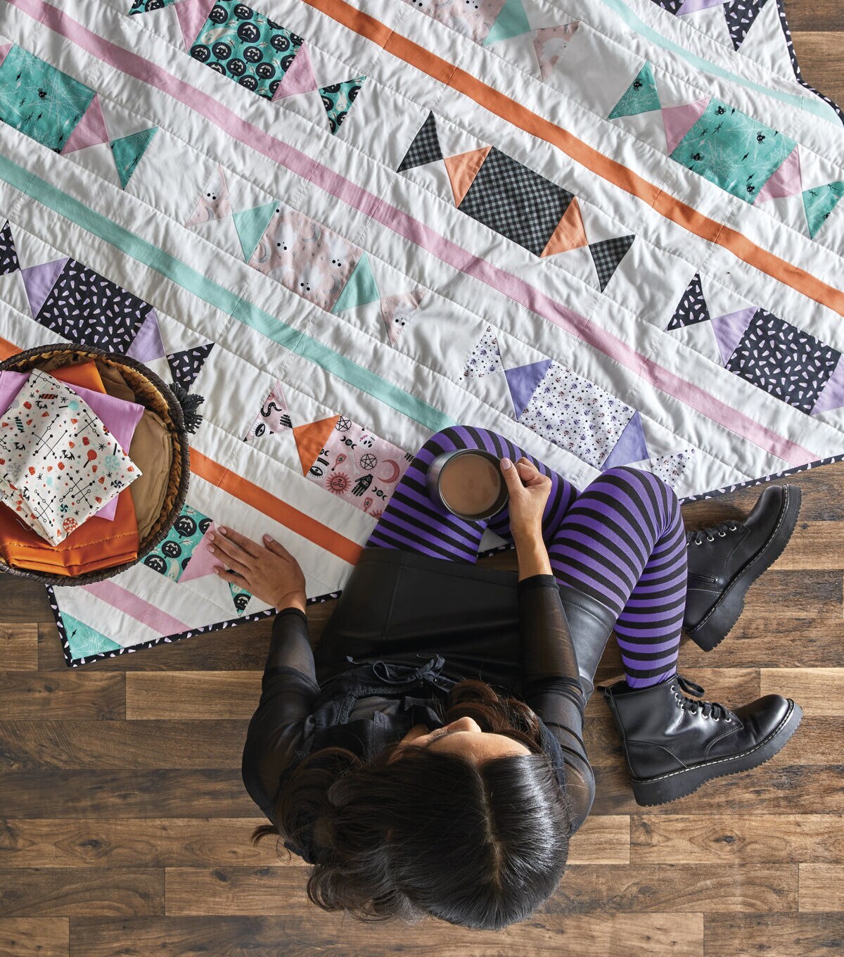 • Haunting Checkers Black Gray Halloween Cotton Fabric
