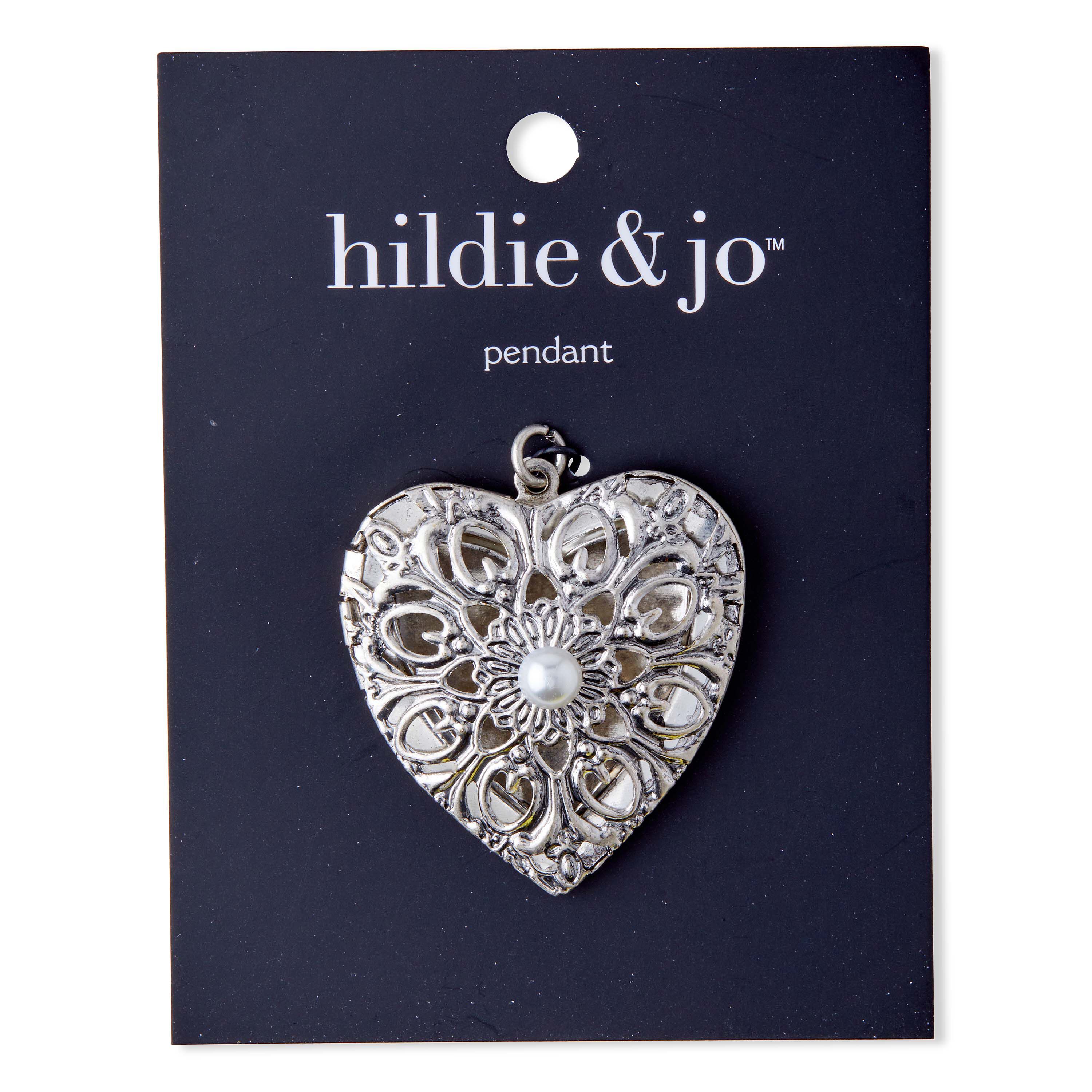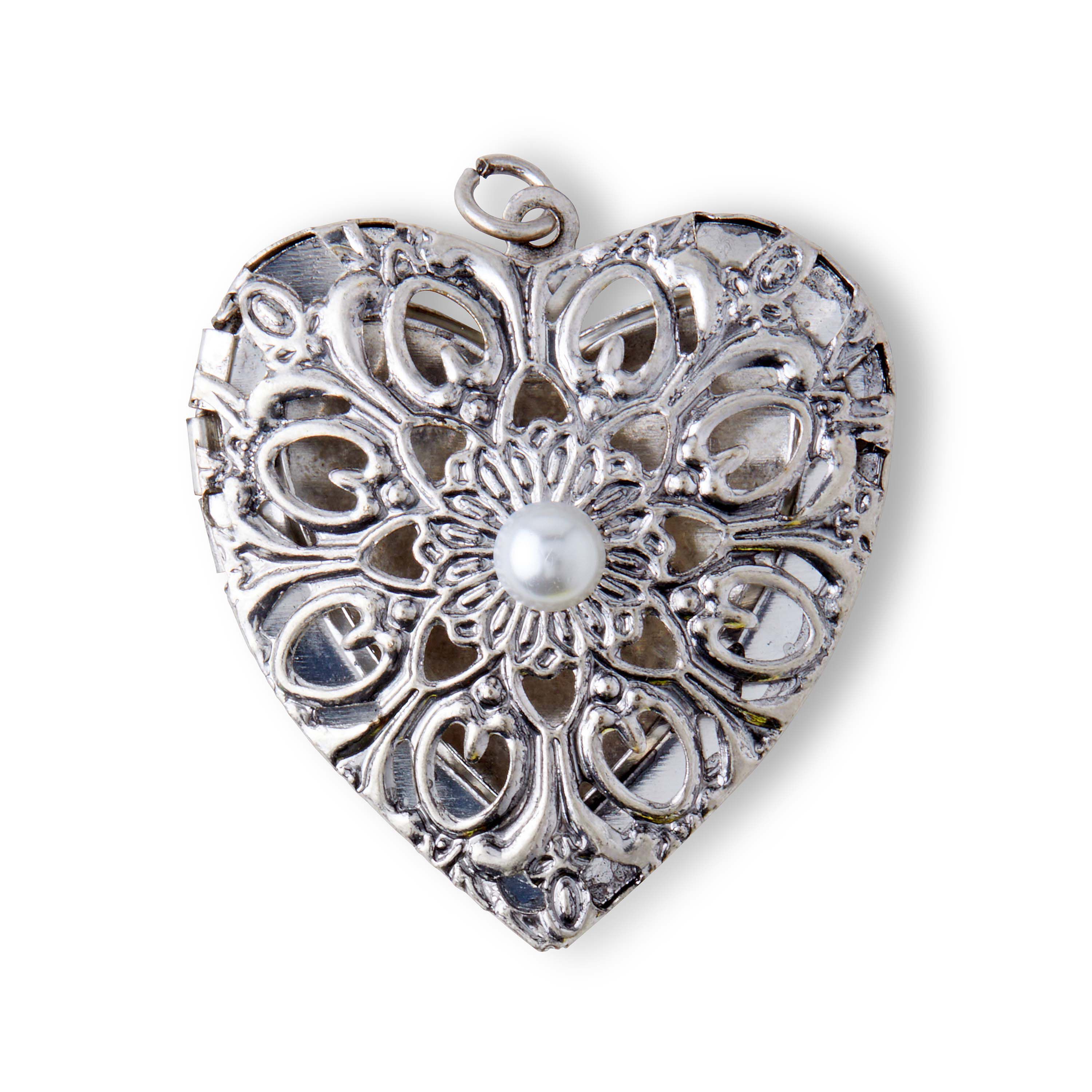 Keep a special memory close to your heart, with the hildie & jo Ornamental Heart Locket Metal Pendant. It's designed intricately using metal, with a pearl in the center for the perfect finishing touch. String this locket pendant on a silver chain to create a lovely necklace.