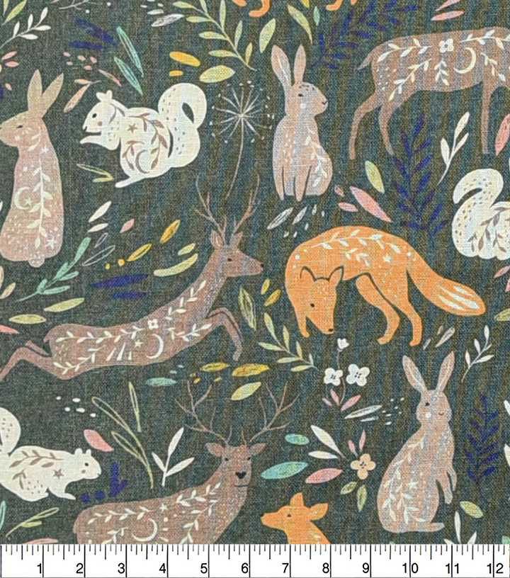 • Heather McLaughlin Woodland Animals On Green Premium Print Fabric