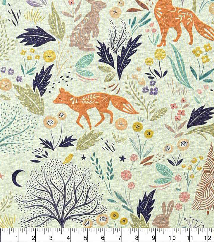 • Heather McLaughlin Woodland Animals On Tan Premium Print Fabric