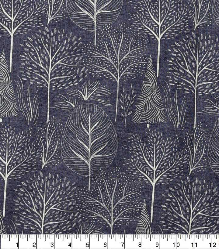 • Heather McLaughlin Woodland Forest Trees On Blue Premium Print Fabric