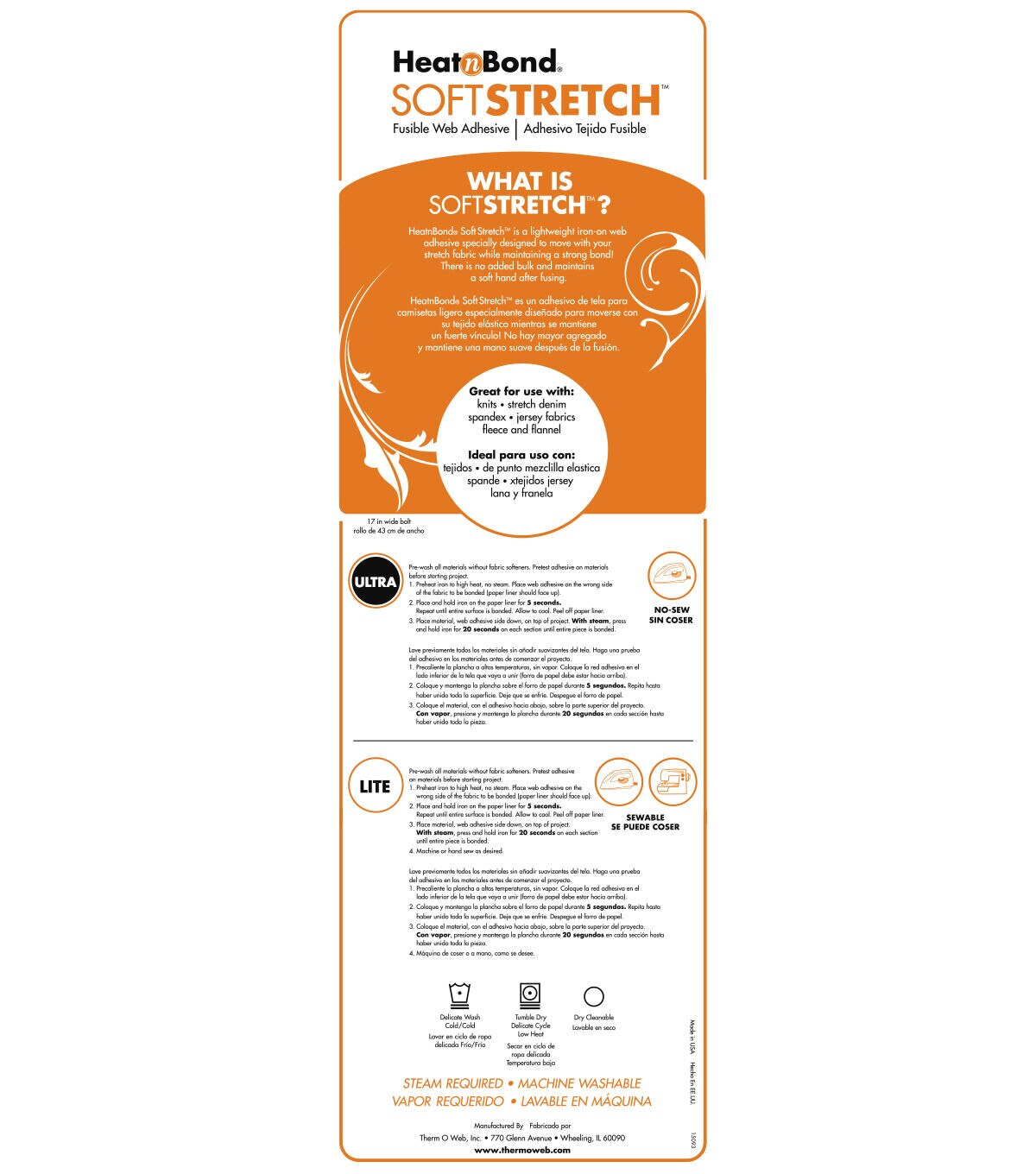 The HeatnBond Soft Stretch Lite Iron-on Fusible Web Adhesive will be a valuable addition to your sewing supplies. This pack contains 20 yards long and 17 inches wide soft stretchable, iron-on adhesive. It is designed to move with your fabric while maintaining a strong bond. Machine-washable and dryable, it is ideal for various sewing projects.