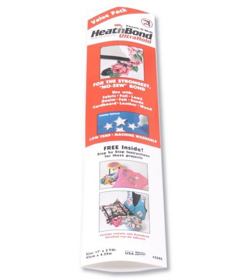 Bond heavyweight fabrics and materials for the strongest no-sew bond. Iron on paper side up to wrong side of material. Peel paper backing. Take adhesive backed material and iron onto project. Value pack. Machine washable. Made by Therm O Web.
