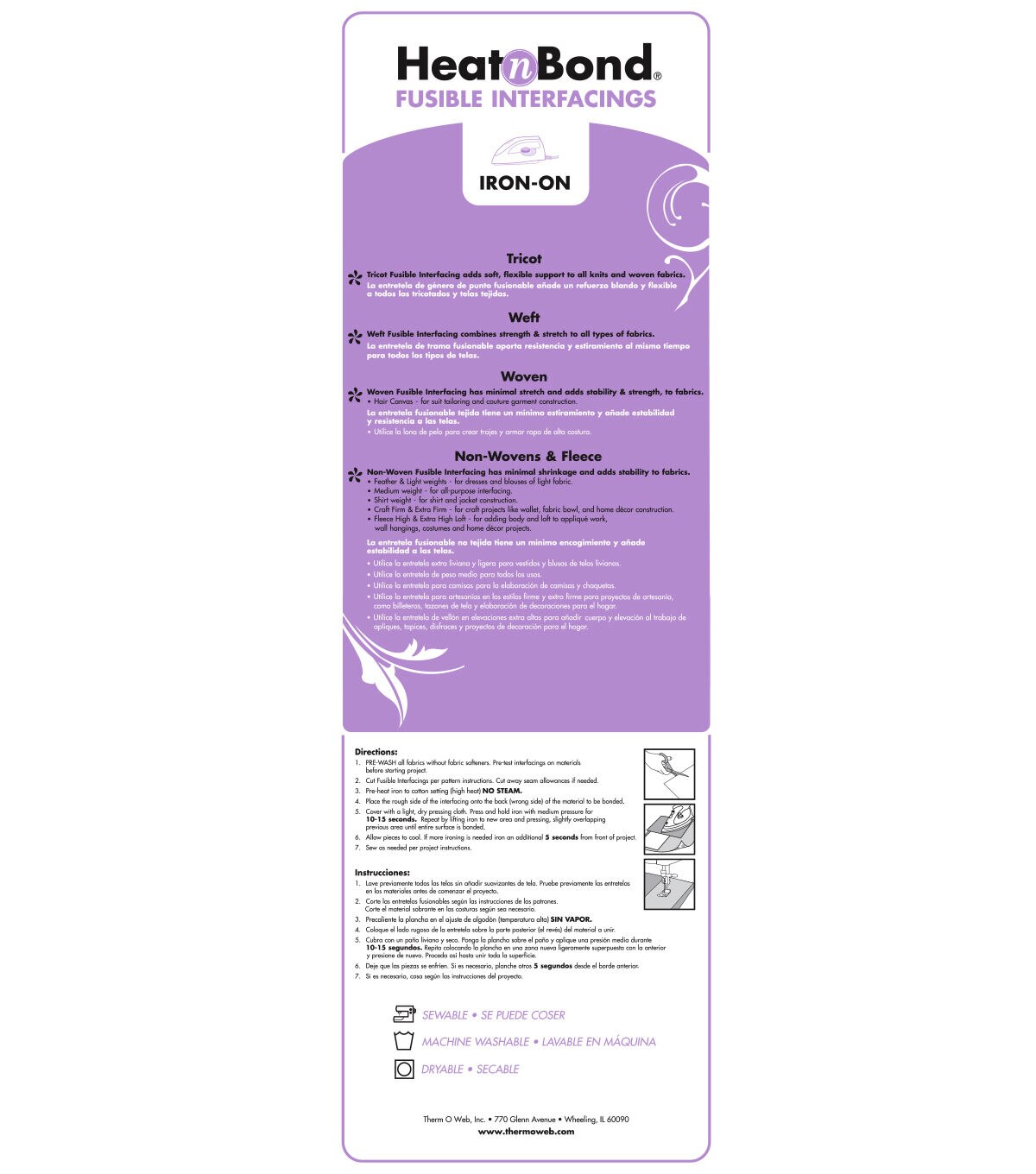 HeatnBond Soft Woven Fusible Interfacing is used for light weight fabrics with delicate flow. Fabrics such as flowy silks, lightweight linens and light woven cottons coordinate nicely with this interfacing. It’s useful for collars, buttons, cuffs, plackets and seams. Soft interfacing is also a nice backing for punch needle embroidery and for stabilizing quilting blocks. Woven interfacing has a grainline and is meant to be cut respective to the grainline of the fabric. It should be used with fabric that has little to no stretch. The unstructured flow of this interfacing takes on the drape of the fabric it is fused to. HeatnBond Fusible Interfacing products have an adhesive application on one side. Ironing it directly onto the fabric eliminates the need for basting and pinning. Constructing a garment or any other project using a fusible interfacing is much easier because it will not shift about.