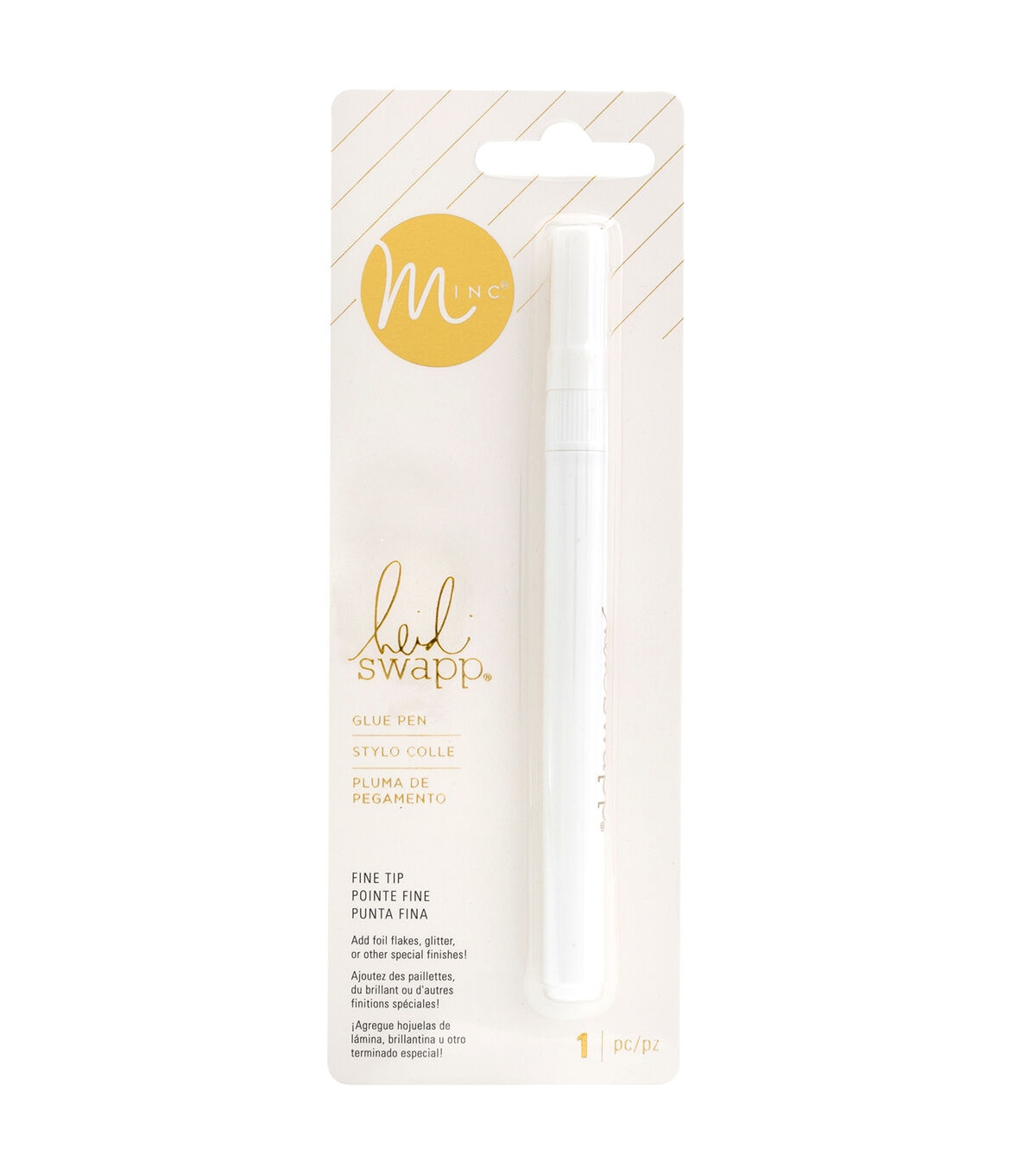 Take your project to the next level with this glue pen! This process is simple, draw with the pen, let dry, and then run the design in the Minc with your choice of foil. You can also add foil flakes to your handlettering. Wait for the flakes to dry then brush them with a soft tissue to uncover the beauty of your gold flaked design! Includes one fine tip glue pen.