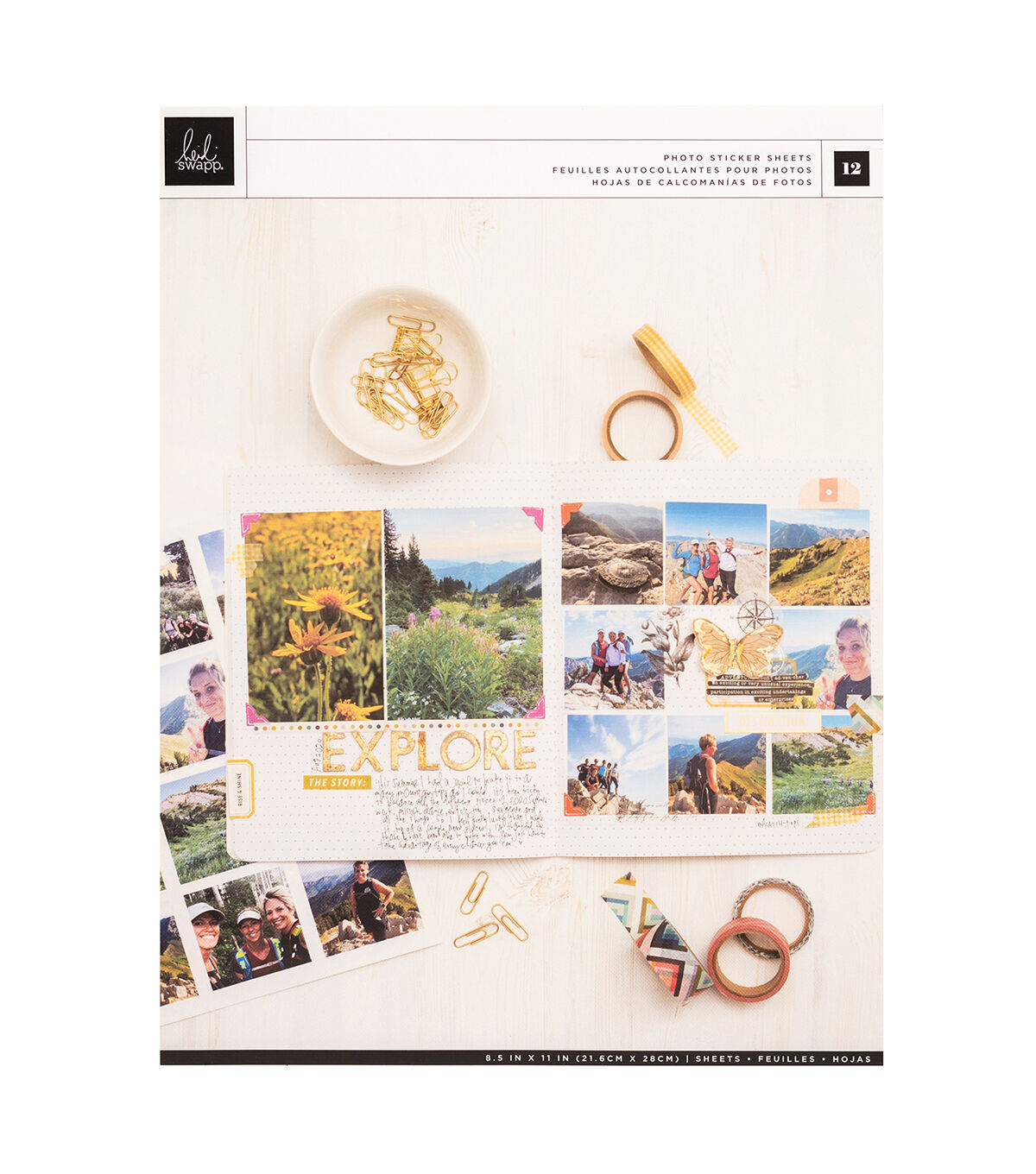 Print your favorite photos in a variety of different sizes with Photo Paper! These special photo paper stickers come in three different sizes to choose from: 3.7x4.9-inch, 2.3x3-inch, and 2.35x2.35-inch. For more information and to download your photo template to easily print your photos, visit www.heidiswapp.com. This package includes 12 photo sticker sheets in a variety of sizes.