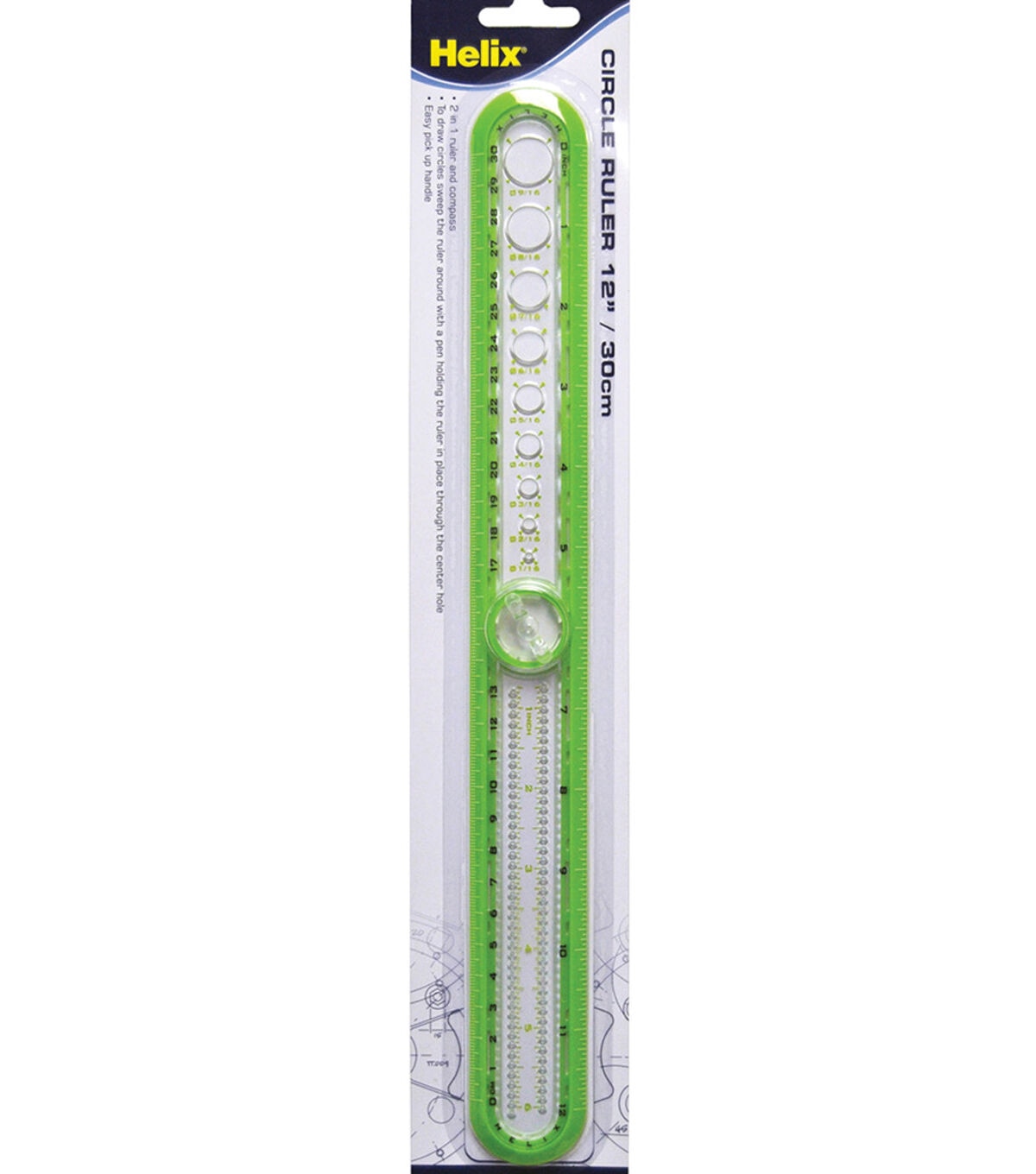 This dual-purpose ruler also works as a compass, allowing the you to make circles from 1/16" to 12" in diameter. A useful tool for draftsmen, students, artists and crafters who require precise, measured lines. Great for mathematic calculations, technical drawings and designing patterns.