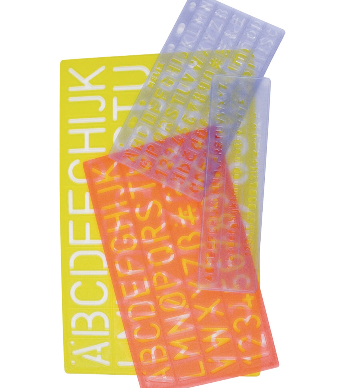 This value pack contains four frequently used lettering guides for creating signs with letters and numbers. A fun tool for mixed media, collage and craft projects, these guides are also useful for illustration and design. They can be used with pencils, brushes or markers, any shape or size. This pack contains 5 mm / .25" upper and lowercase letters, 10 mm / .5" upper and lowercase letters, 20 mm / .75" uppercase letters, and 30 mm / 1.25" uppercase letters.