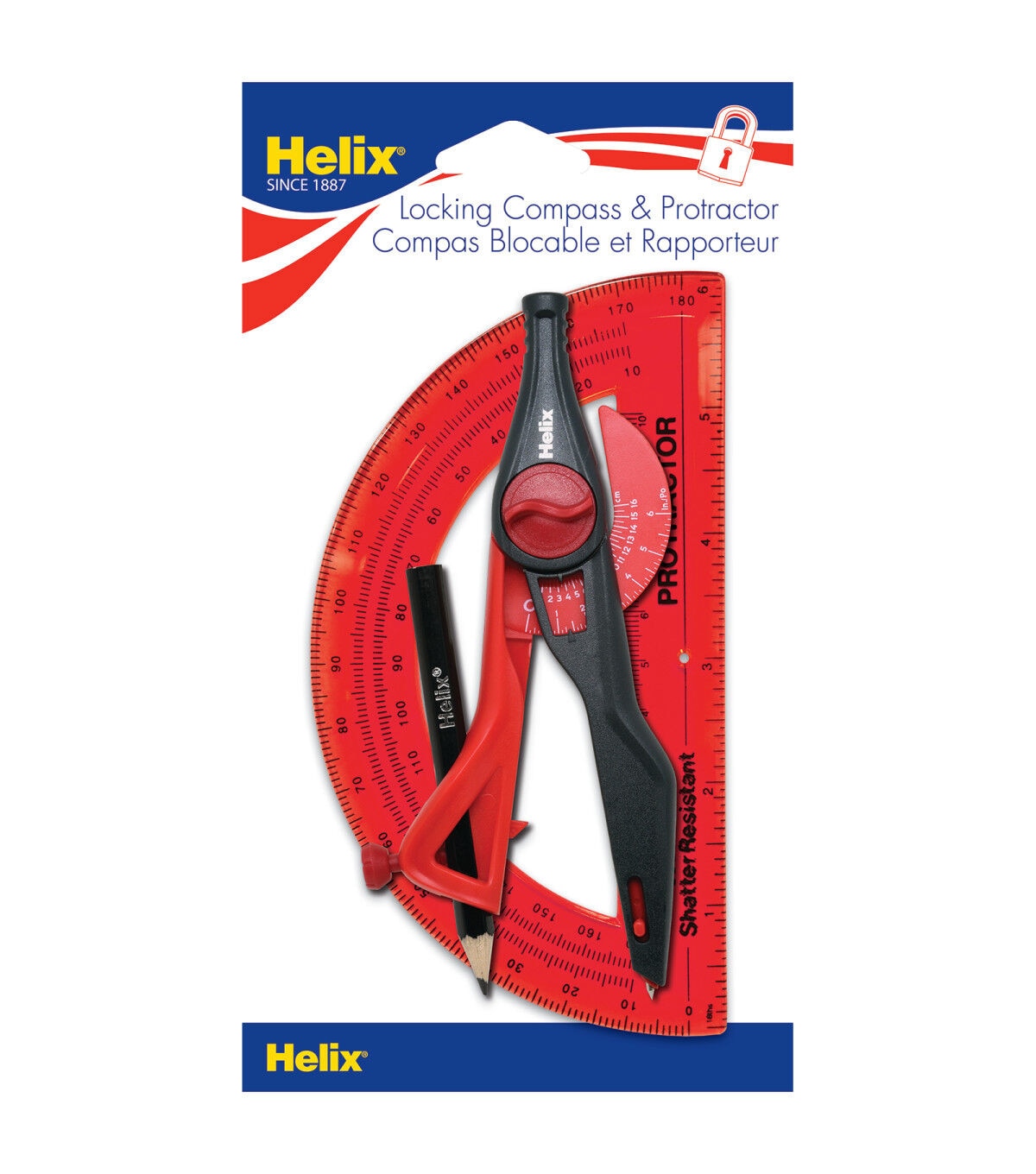 This economical ball-bearing compass comes with a 6" 180° protractor. Essential tools for lessons in geometry an invaluable for creating accurate technical drawings.