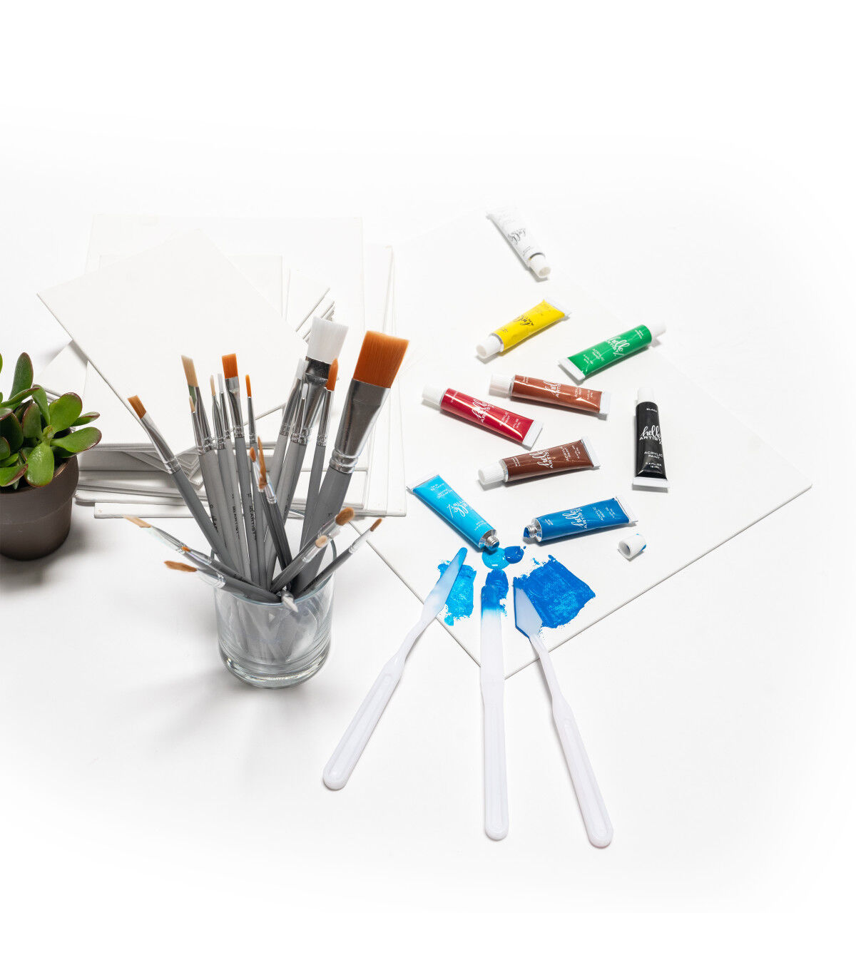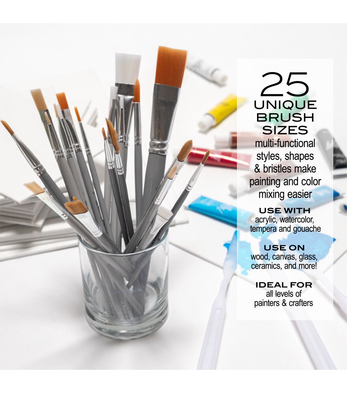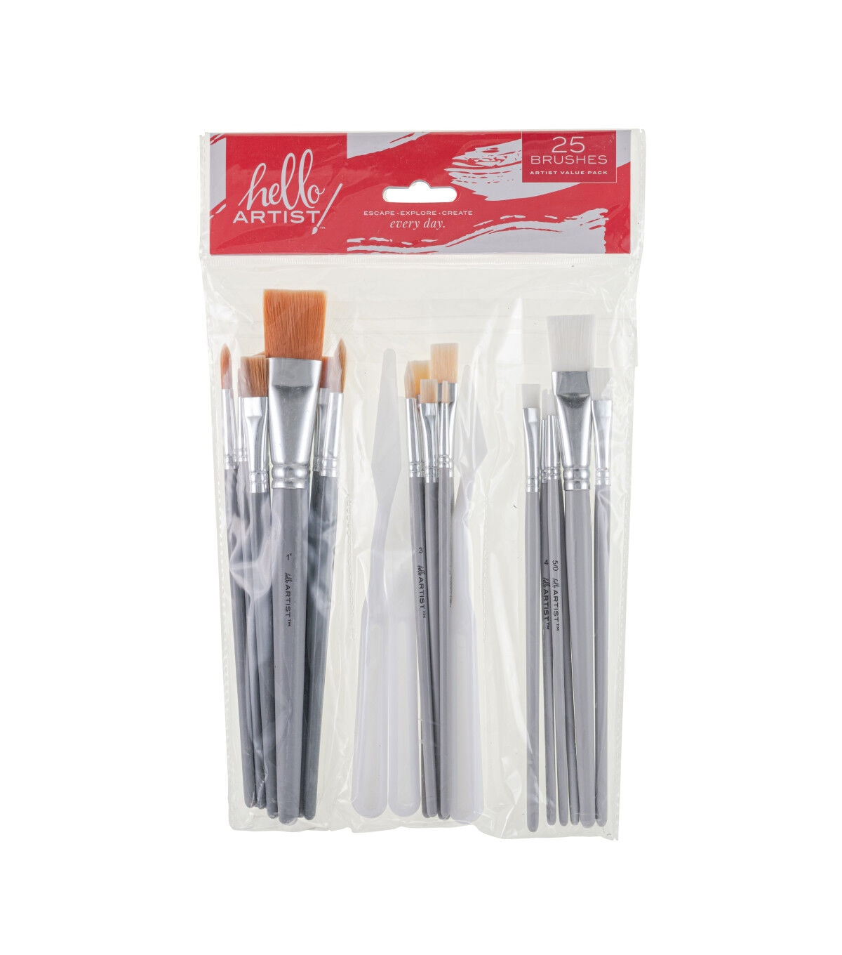 - 25 unique brush sizes from Hello, Artist! with multi-functional shapes & bristles to help make painting & color mixing easier. Perfect for all levels of painters & crafters