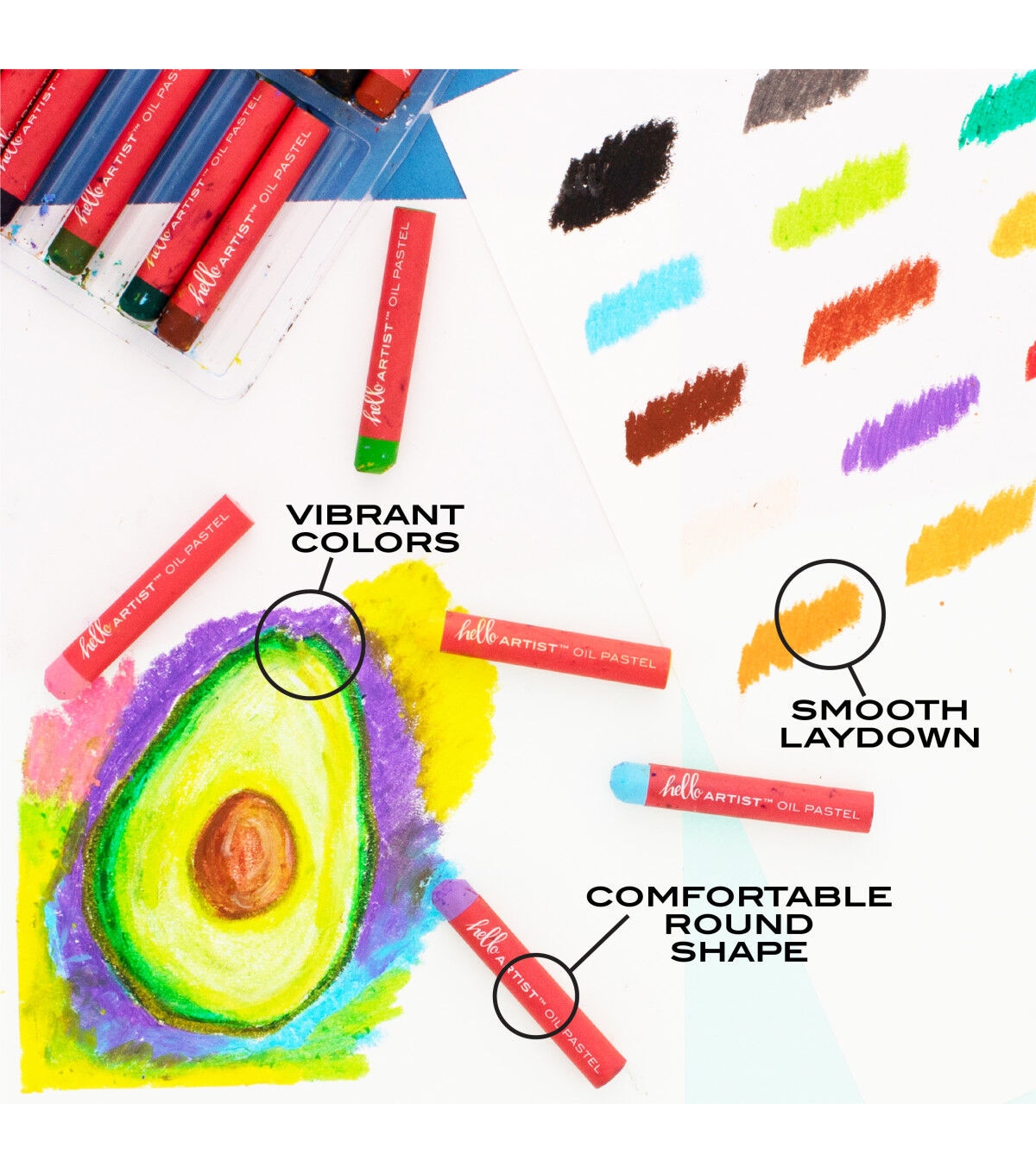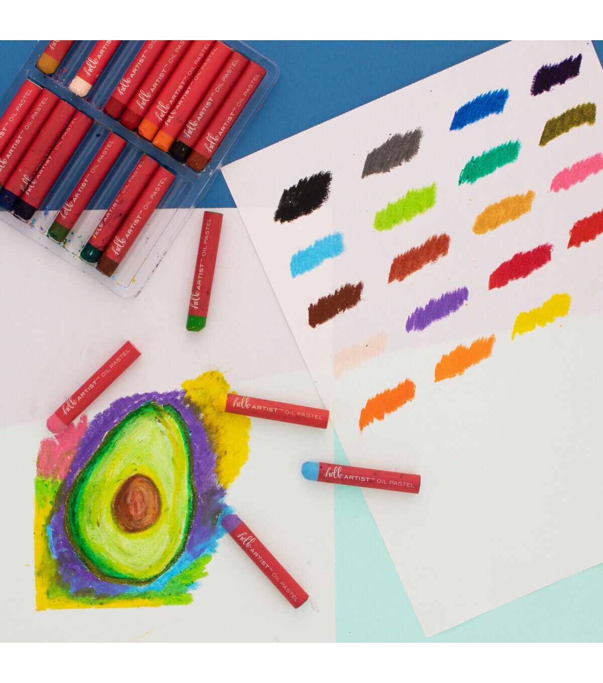 The Hello, Artist! Oil Pastel Set features 20 oil pastels. They are vibrantly colored and highly pigmented. The colors will not fade over time.
