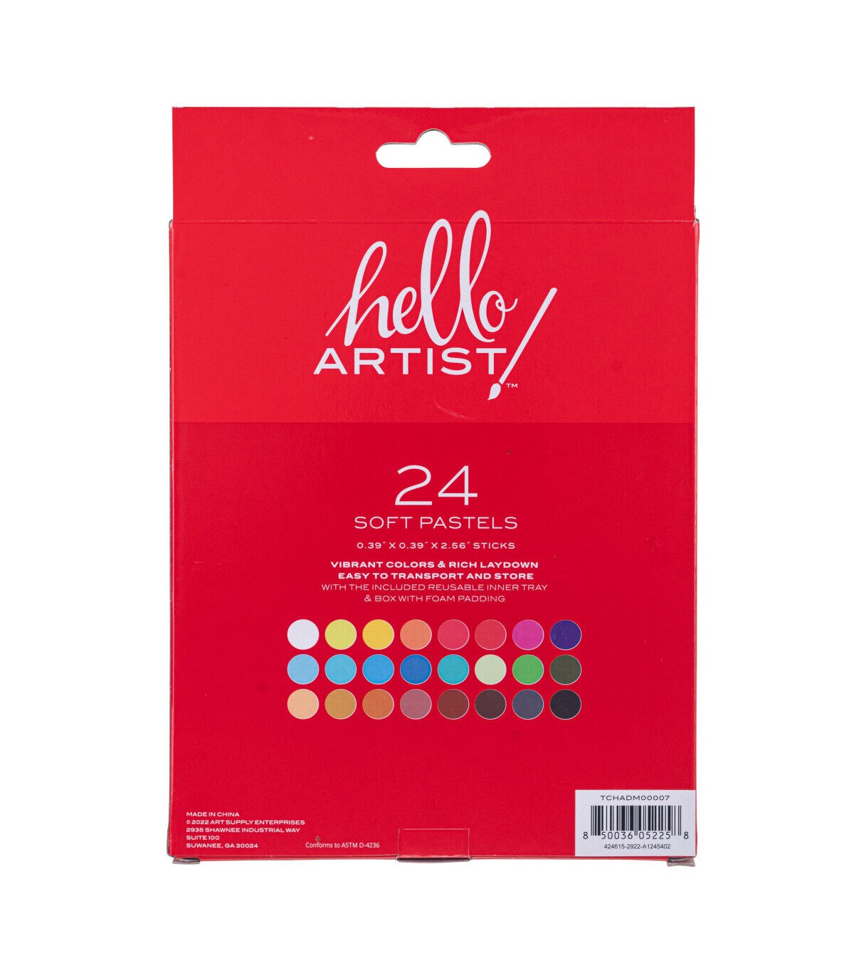 This set of pastels from Hello, Artist! features 24 soft pastels. They come in a clamshell case. The set features vivid colors with high-quality pigments that are easily blendable.