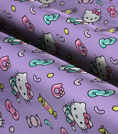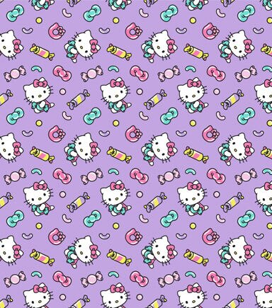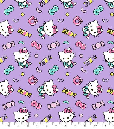 This Hello Kitty candy fabric is filled with Hello Kitty and Candy on a purple background. This fabric would be perfect for creating a cute bag or throw blanket. This is 100% cotton and machine washable.