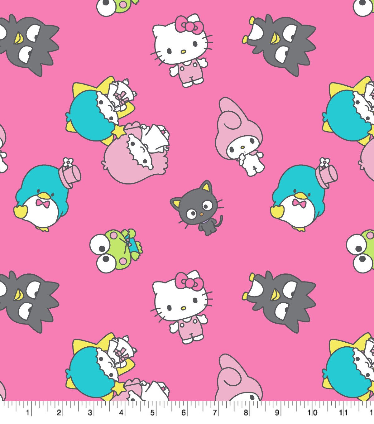 Get Cozy with Hello Kitty and Friends on Pink Cotton Fabric