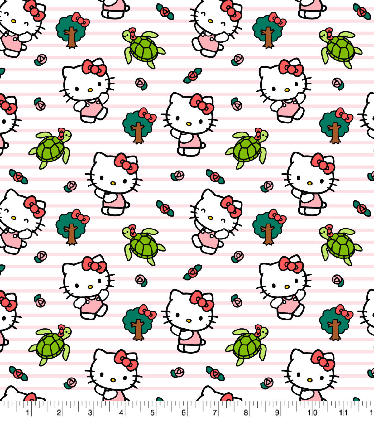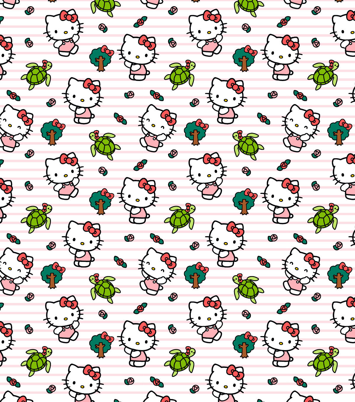 Adorable Hello Kitty & Turtle Friend on Pink Cotton Fabric