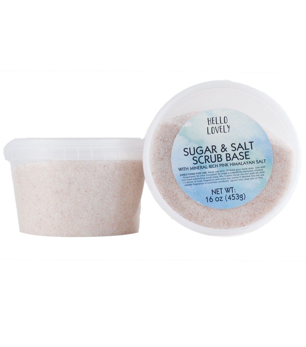 Wonderfully exfoliating, the Hello Lovely Sugar & Salt Beauty Scrub Base is made with mineral rich Himalayan salts to nourish your skin. Add fragrance, essential oils and color to personalize and create a relaxing spa-like experience. You can also use with grapeseed oil for a beautifully textured, mineral enriched exfoliating scrub.