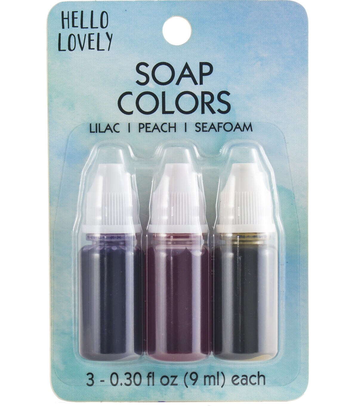 The super concentrated Hello Lovely Beauty Soap Colors-Lilac, Peach & Seafoam can be used alone or custom blended together to create a rainbow of choices. These are cosmetic water-based colors in a variety of premixed shades or formulated to work in all bath and body bases.