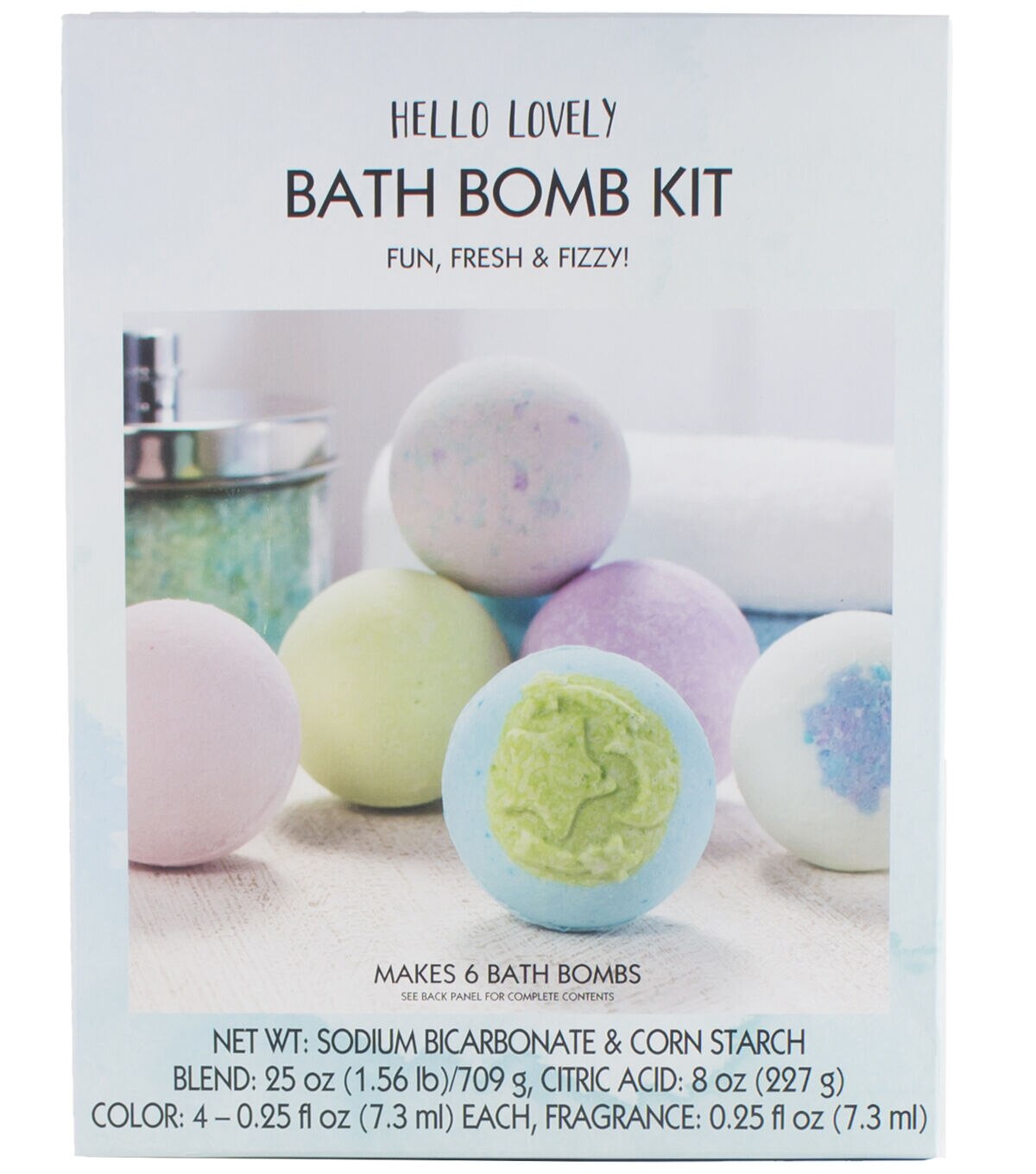 Use the Hello Lovely Bath Bomb Kit to make your own fabulously fragranced bath bombs. This kit contains four colors to create designs as unique as you.