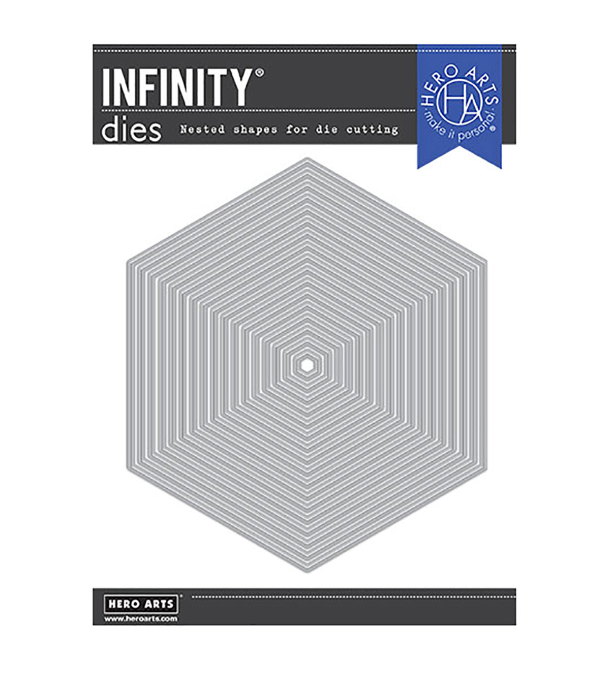 Add dimension and interest to your project with this generous set of 17 nesting geometric hexagon dies. Hero Arts Infinity Dies offer a generous variety of sizes around a specific cutting theme. Our nesting die sets allow you to add architectural form and tidy framing to your cardmaking, stamping projects, and more. Universally compatible, they are engineered from solid metal construction with a sharp and durable cutting edge.