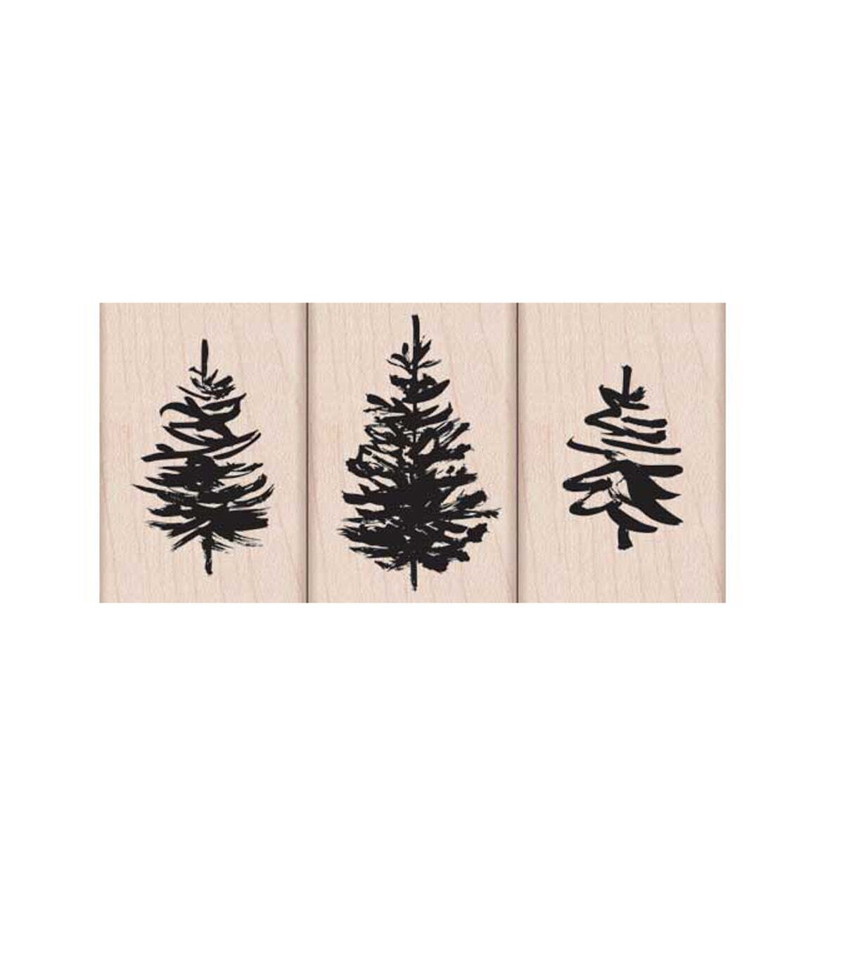 The Hero Arts Wood Mounted Rubber Stamps-Paintbrush Trees Trio are perfect for your holiday cards, tags and other paper craft projects. These stamps feature three trees portrayed in an abstract brushstroke style for visual appeal. This pack includes three rubber stamps mounted on wood blocks.