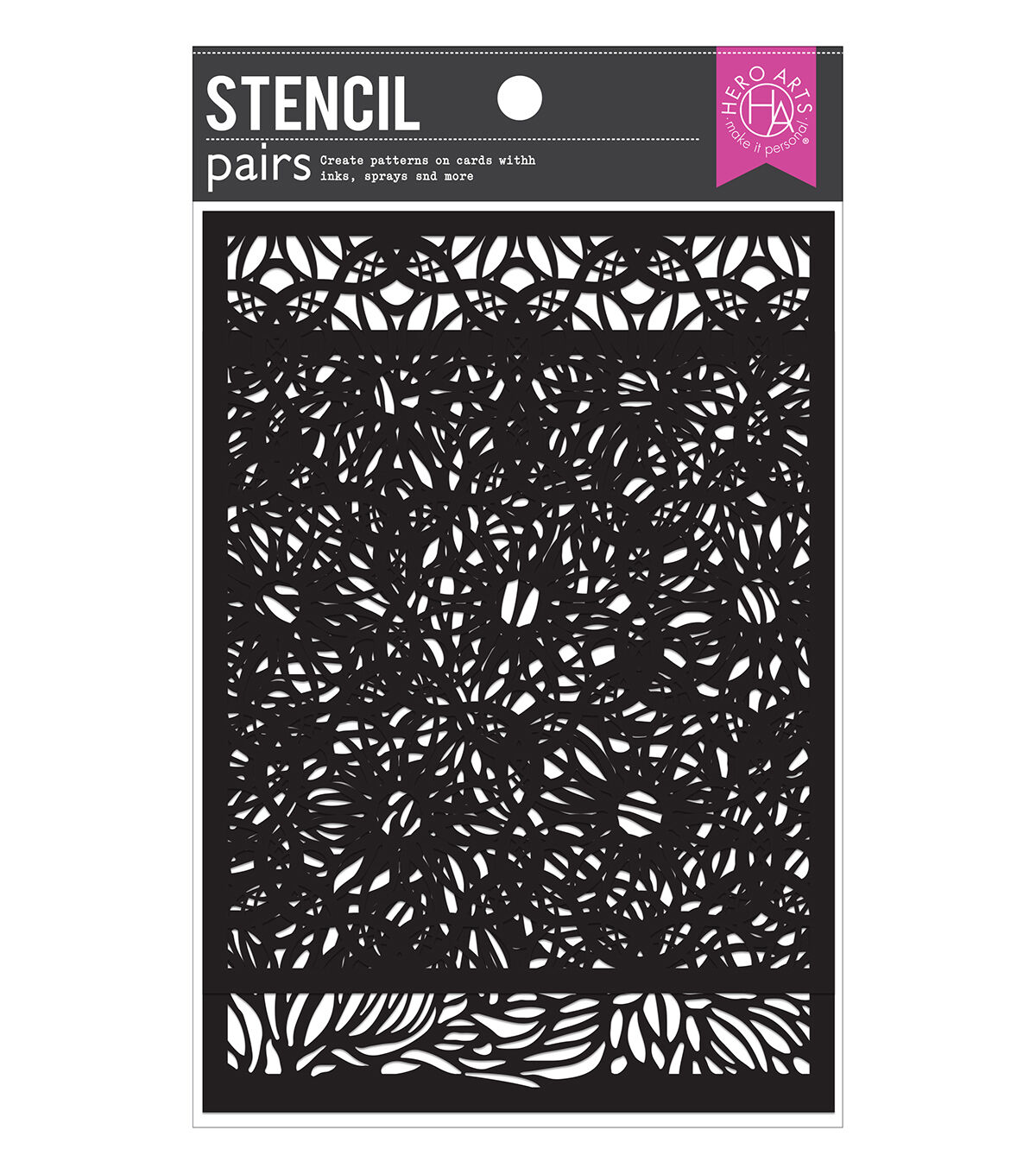 Hero Arts Stencil Pairs are two complementary stencils made of durable black mylar. Use a paintbrush, ink pad, dauber, or spray to leave a stylish impression. Each stencil measures 5.25" x 6.5".