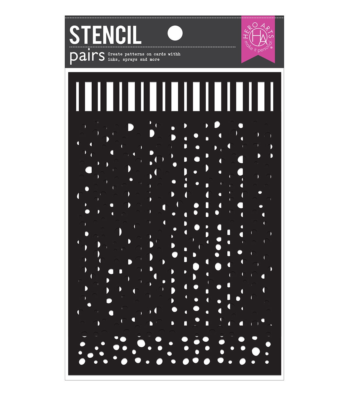 Hero Arts Stencil Pairs are two complementary stencils made of durable black mylar. Use a paintbrush, ink pad, dauber, or spray to leave a stylish impression. Each stencil measures 5.25" x 6.5".