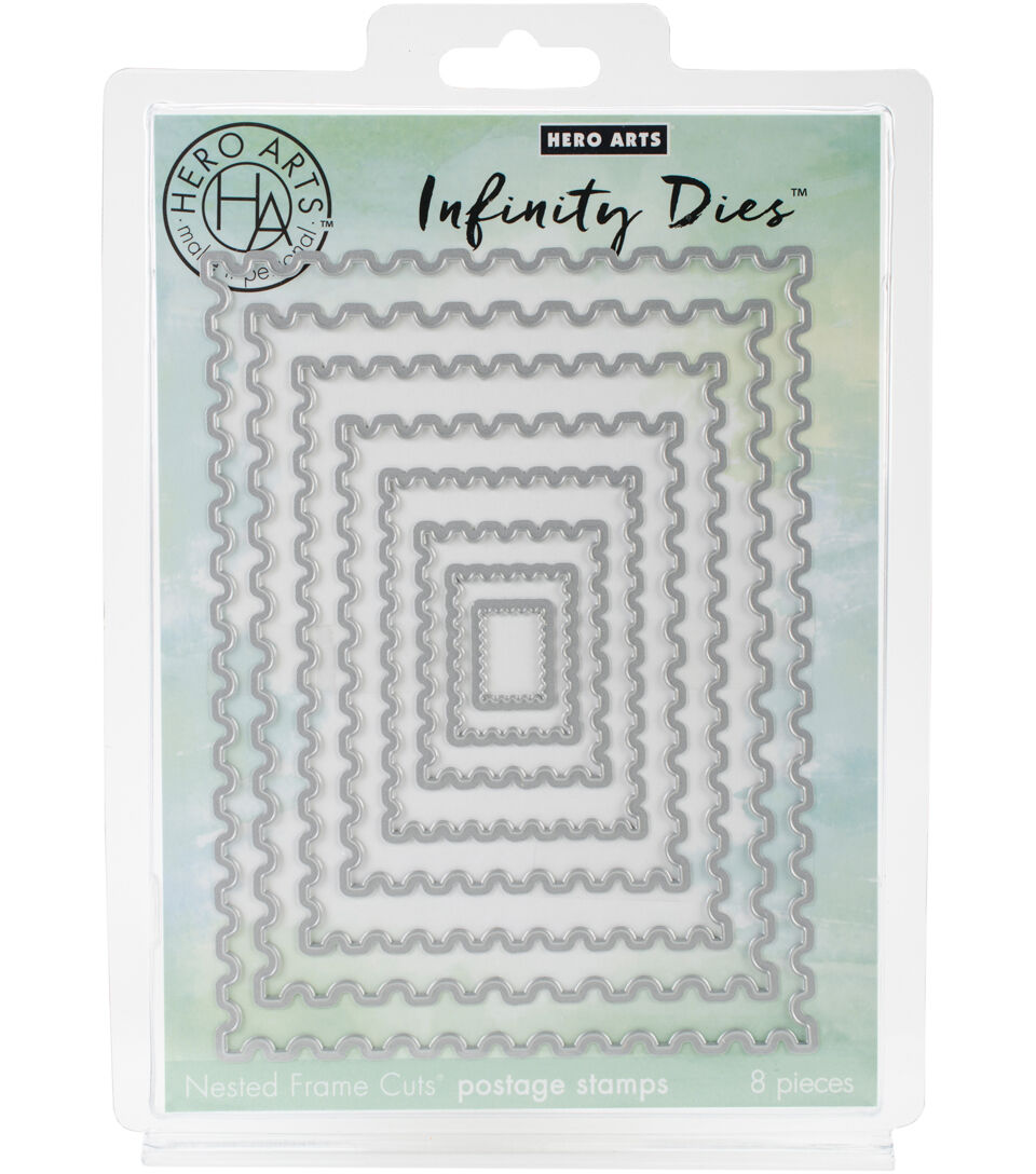 These precision-etched metal dies create perfect cut-outs! Compatible with most die-cutting machines (sold separately). This package contains Nesting Postage Stamps: eight dies measuring between 0.25x0.75 inches and 4.25x5.75 inches. Imported.