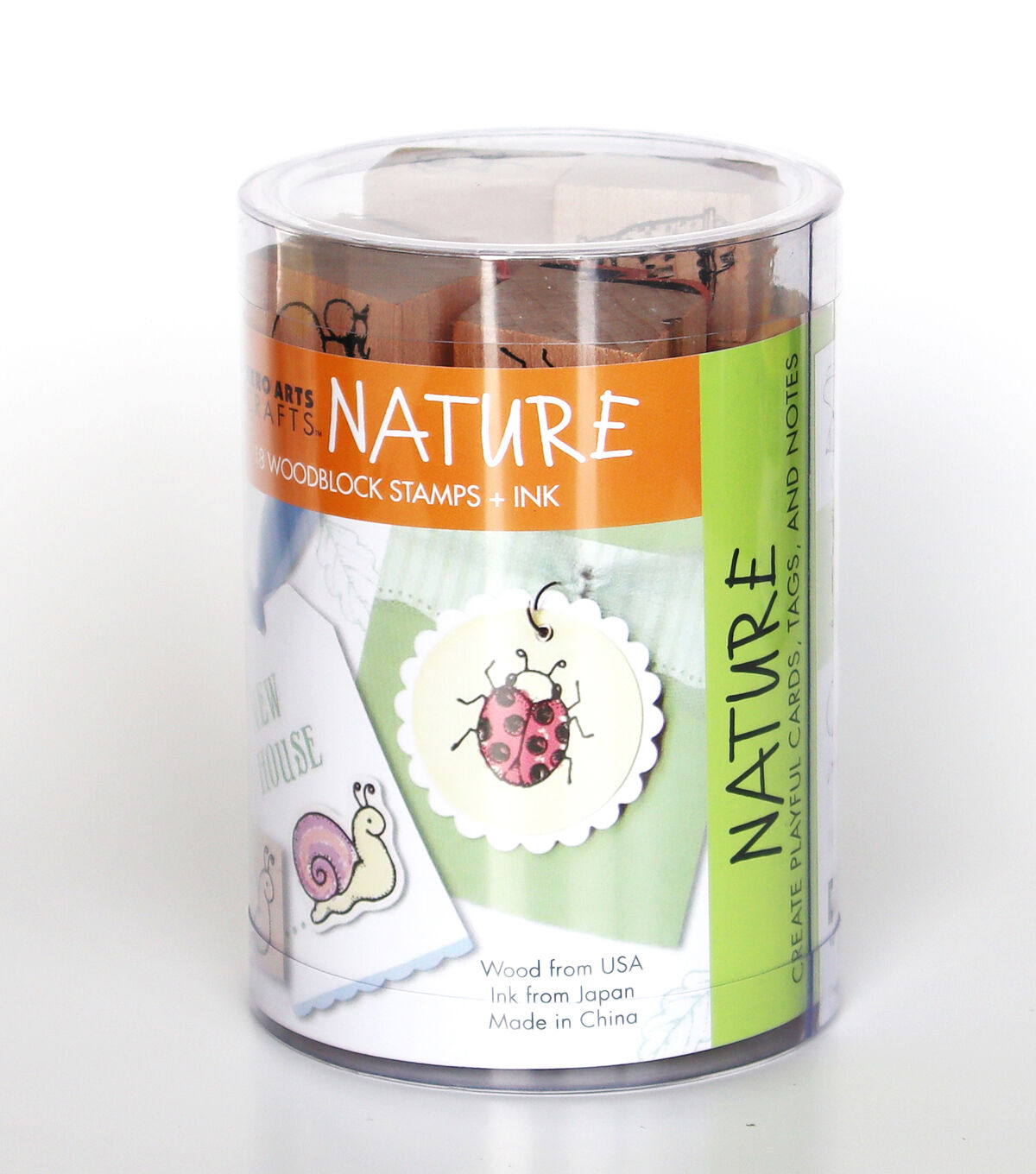 Hero Arts Ink 'n' Stamp Sets create playful cards, tags, and notes with these cute coordinated sets. Each set contains eighteen fully assembled wood-mounted rubber stamps (each measures approximately 1x3/4 inch) in a variety of designs, and one 1-1/4x1-1/4 inch stamp pad. The set comes in a handy storage tube (4-1/4x3x3 inches). Available in a variety of themed sets: each sold separately. Color of stamp pad varies by set.