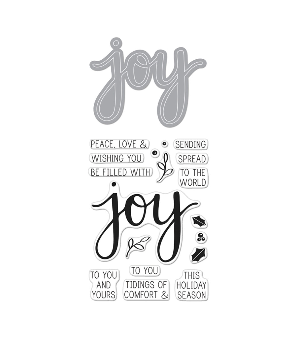 Personalize your paper projects or Christmas decor with the Hero Arts Joy Stamp & Cuts. This pack contains a set of coordinating cutting dies designed from high-quality steel. They can be used with any major die-cutting machine. Use them to cut lovely shapes from paper or cardstock, and add the die cuts to cards, scrapbooks or decor accents. You can also use these dies with coordinating stamps and other embellishments to create a festive Christmas look.