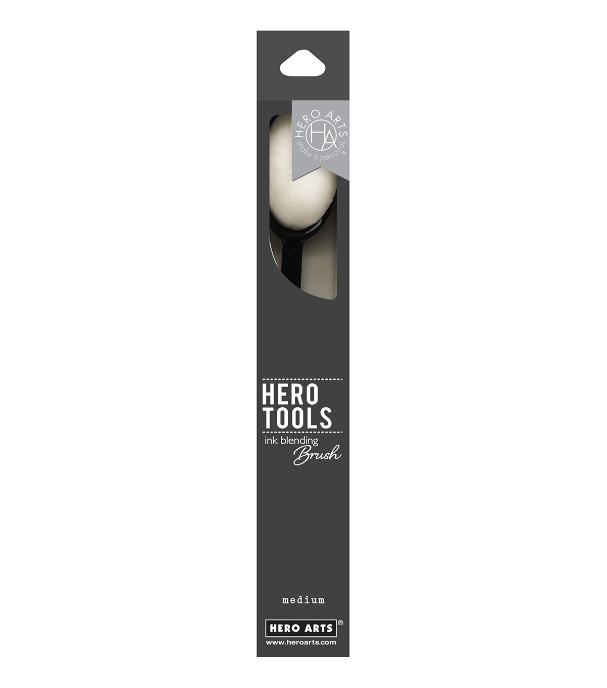 The perfect brush for blending water-based inks onto your cards and projects. Fine white oval brush head and ergonomic handle design make smoothly blended backgrounds a breeze. Clean with gentle soap and water and allow to air dry. Brush head measures 2cm x 3cm. Hero Tools is a curated collection of essential tools for stamping, cardmaking, scrapbooking, and mixed media. We selected the best quality products with a classic branded look in the spirit of the Hero Arts style.