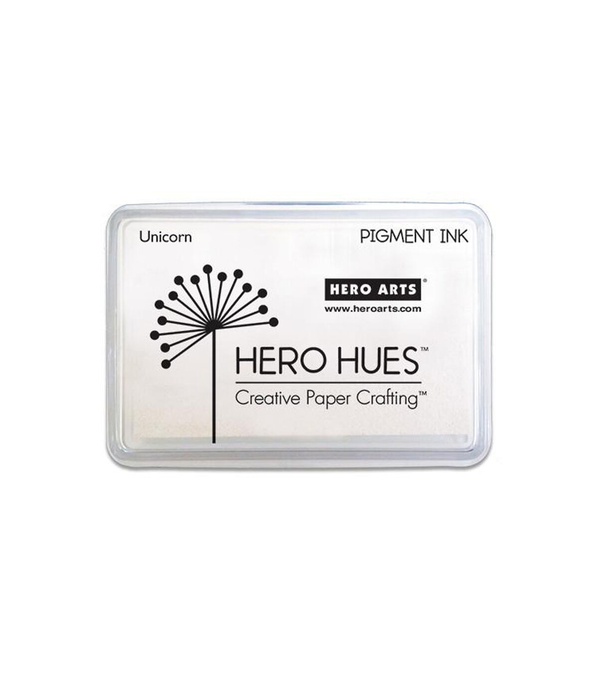 HERO ARTS-Hero Hues Pigment Dye Inkpad. This is an all-around crafting pigment ink for embossing, general stamping and scrapbooking. It is also a heat setting ink for fabrics, wood, clay and more. The ink is fade resistant and will dry permanently on most papers. Acid free and archival quality. This package contains one 2- 3/4x4 inch ink pad. Design: Unicorn. Made in USA.