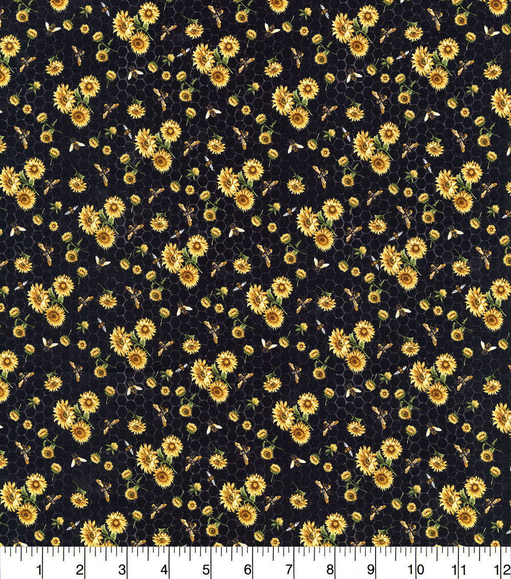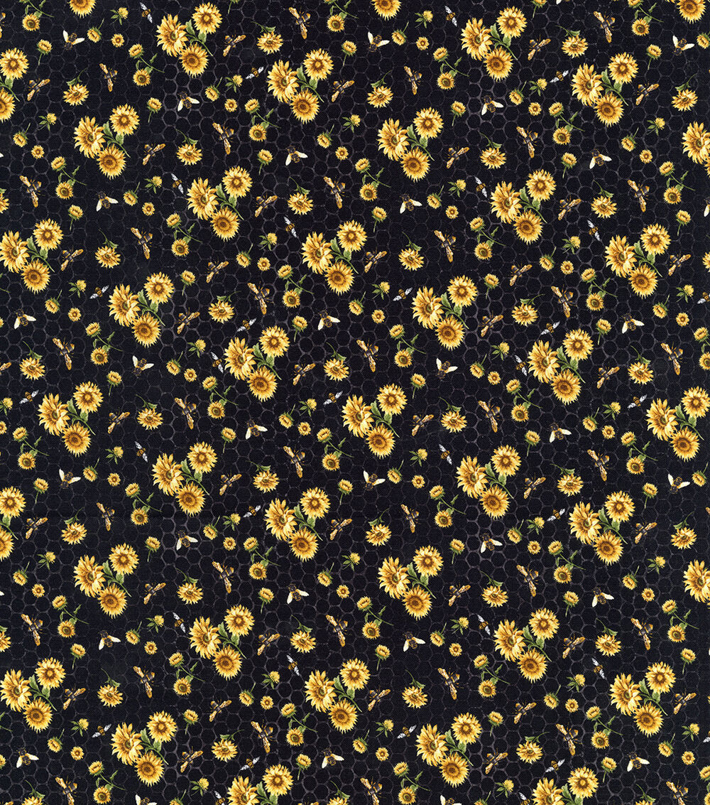 Hi Fashion Bee Positive on Black Honeycomb Premium Cotton Fabric
