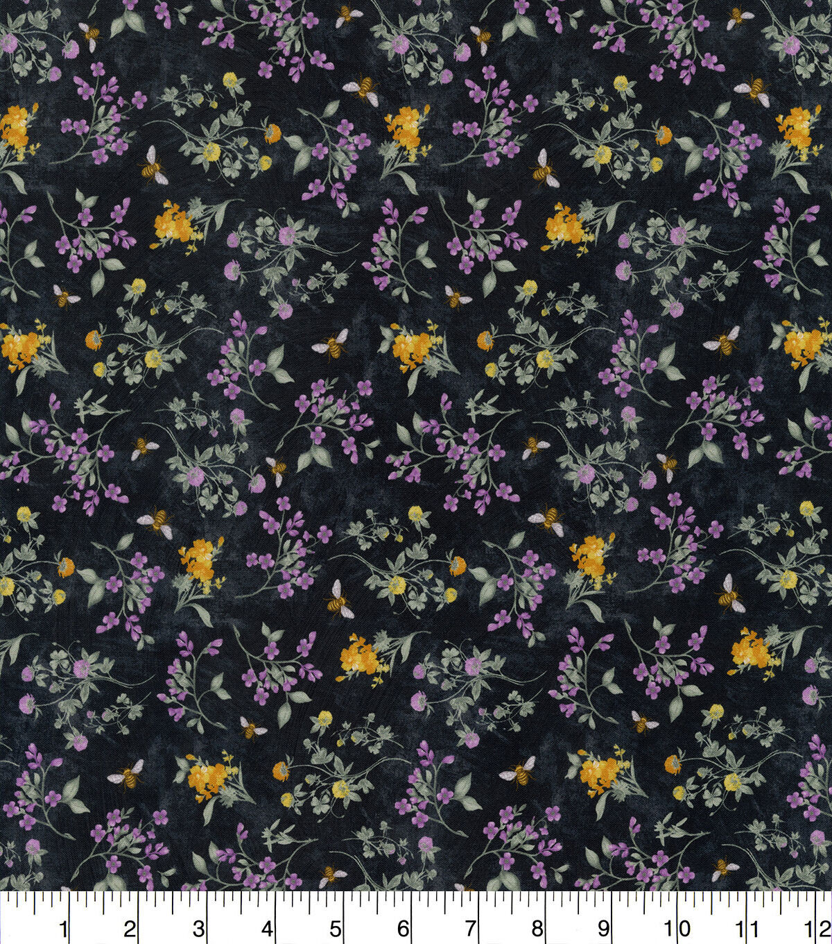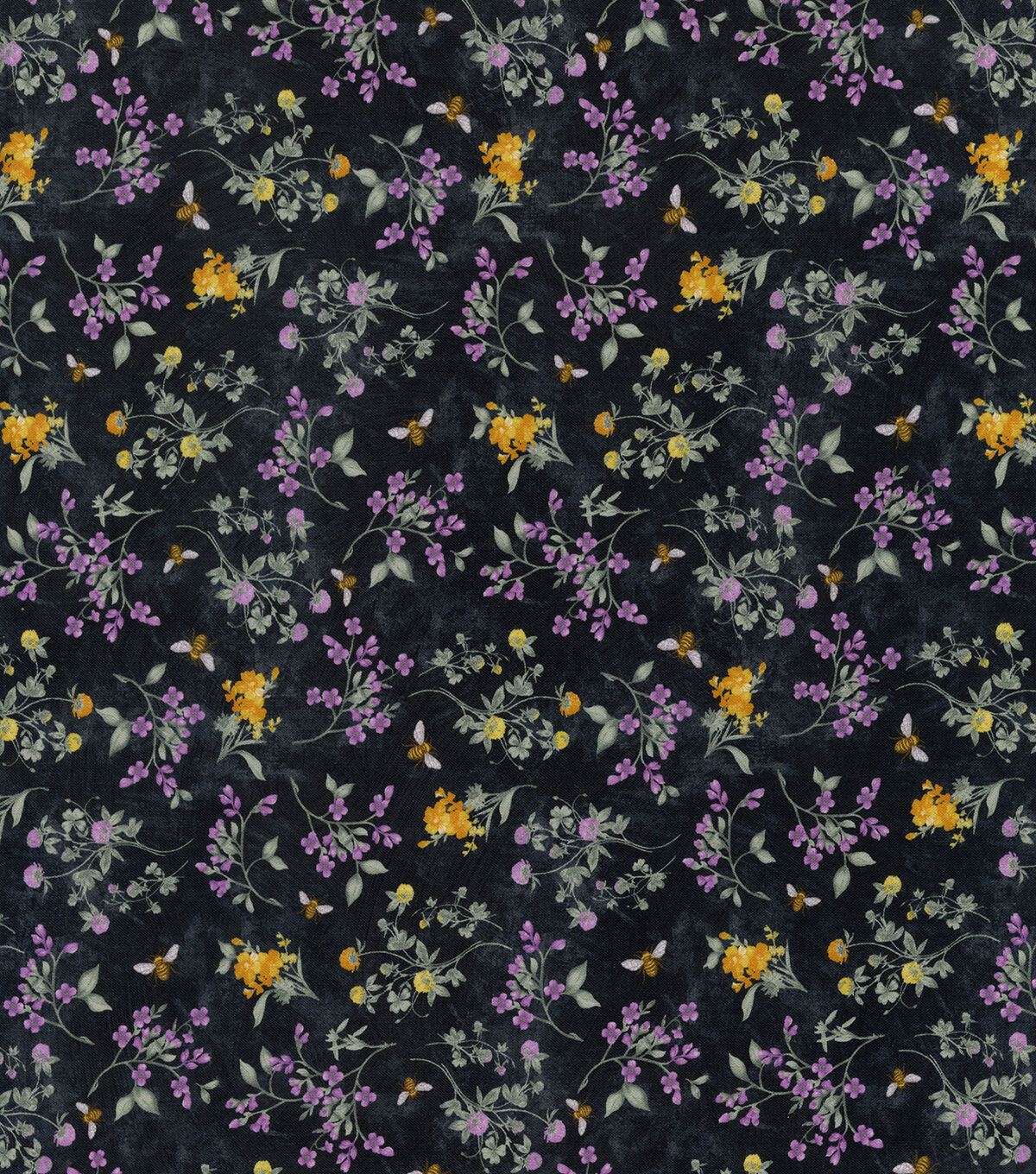 Hi Fashion Bees & Lavender Black Premium Cotton Fabric
